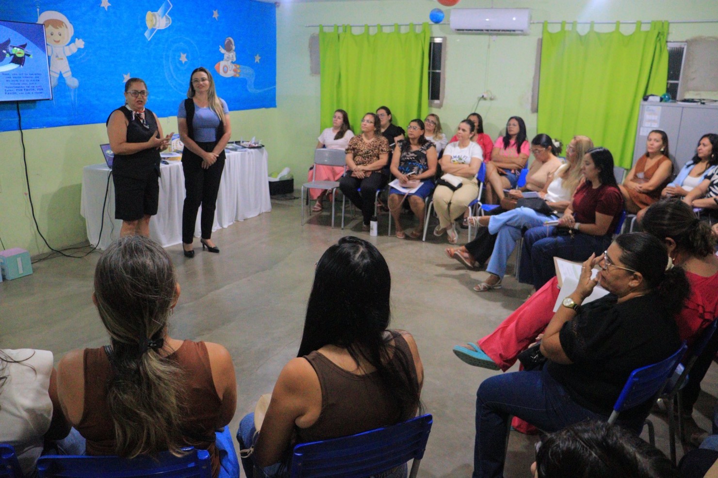 O encontro foi realizado na EMEF Presidente Tancredo de Almeida Neves, às 18h, e contou com a condução da formadora Cristiane Nunes, que trouxe reflexões e orientações práticas voltadas ao desenvolvimento da leitura e escrita desde os primeiros anos escolares.