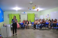 Com o tema “Experiências lúdicas com a linguagem escrita na Educação Infantil”, a formação destacou a importância do aprendizado por meio do brincar, incentivando metodologias que tornam o processo de alfabetização mais leve, criativo e significativo para as crianças.