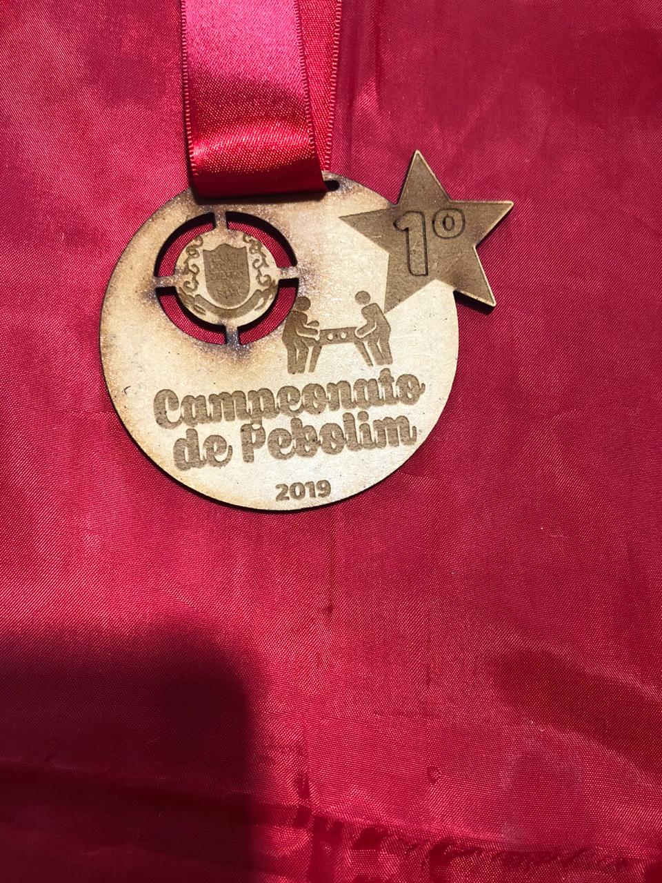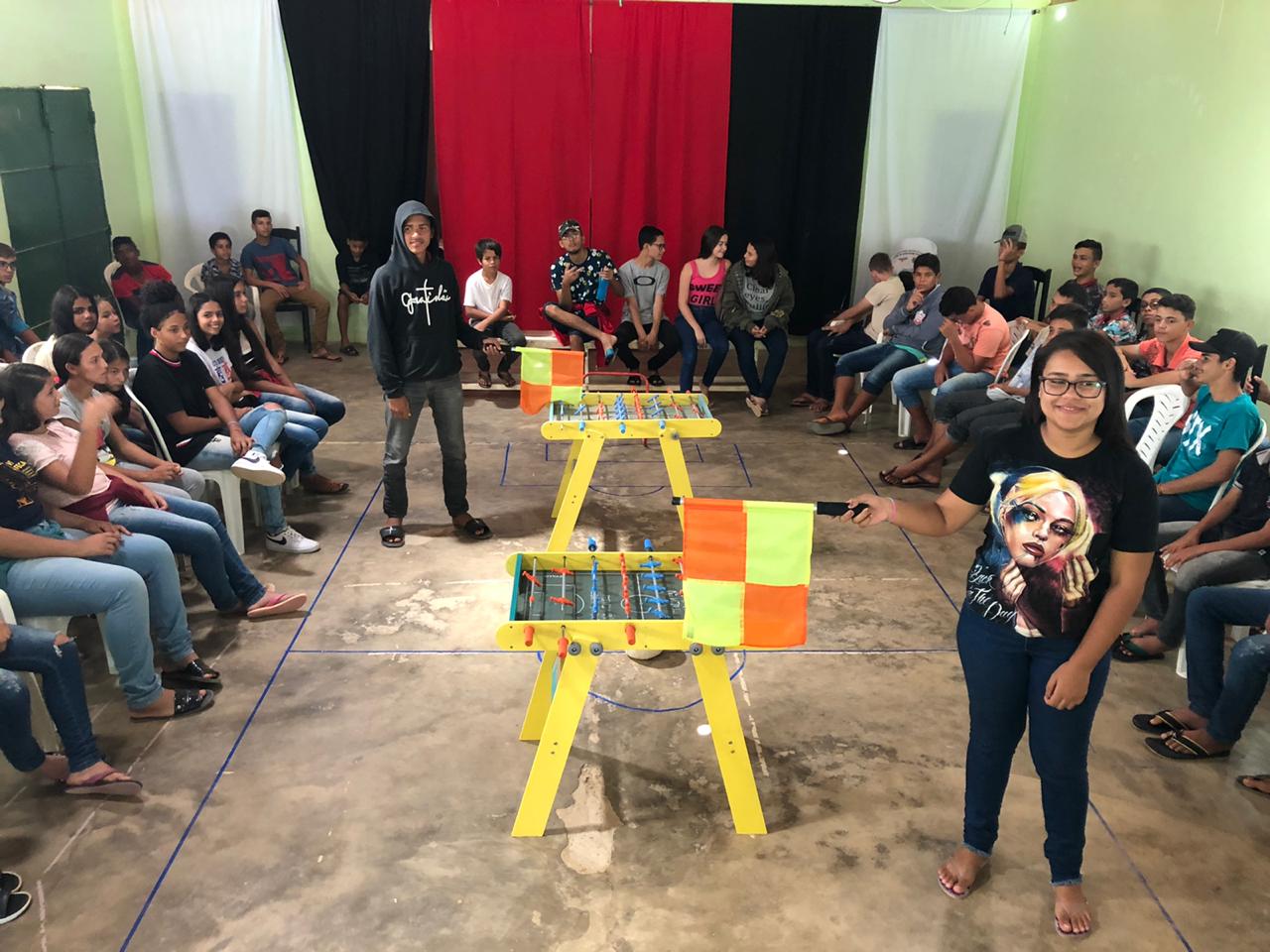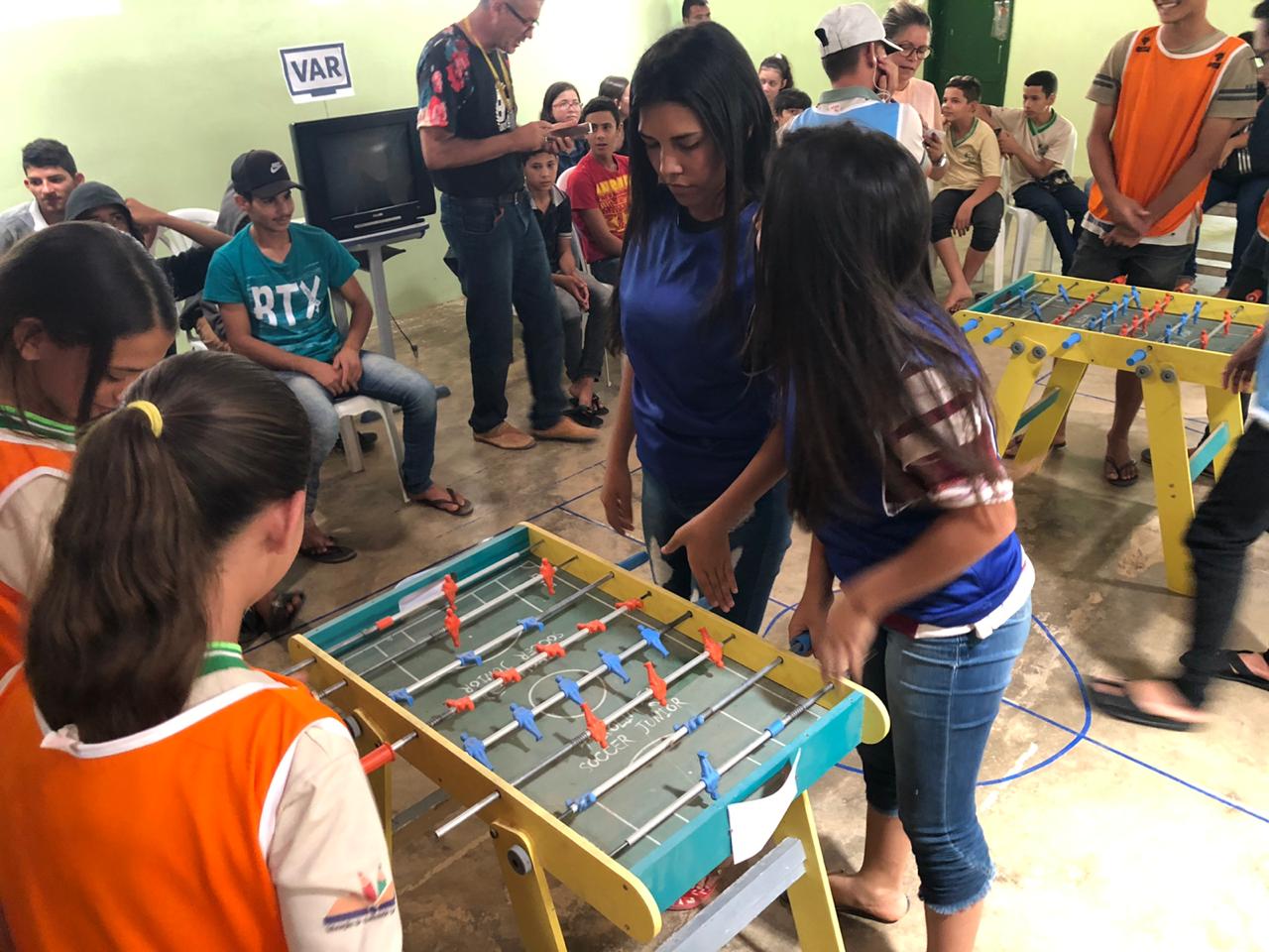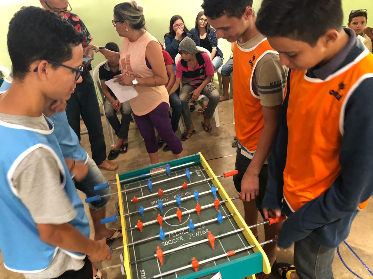 Campeonato de Pebolim do ano 2019”. O jogo é um futebol de mesa que, além de promover a diversão, ajuda a