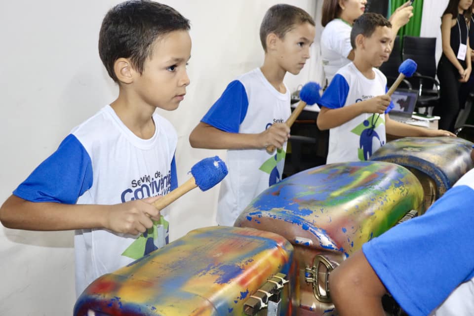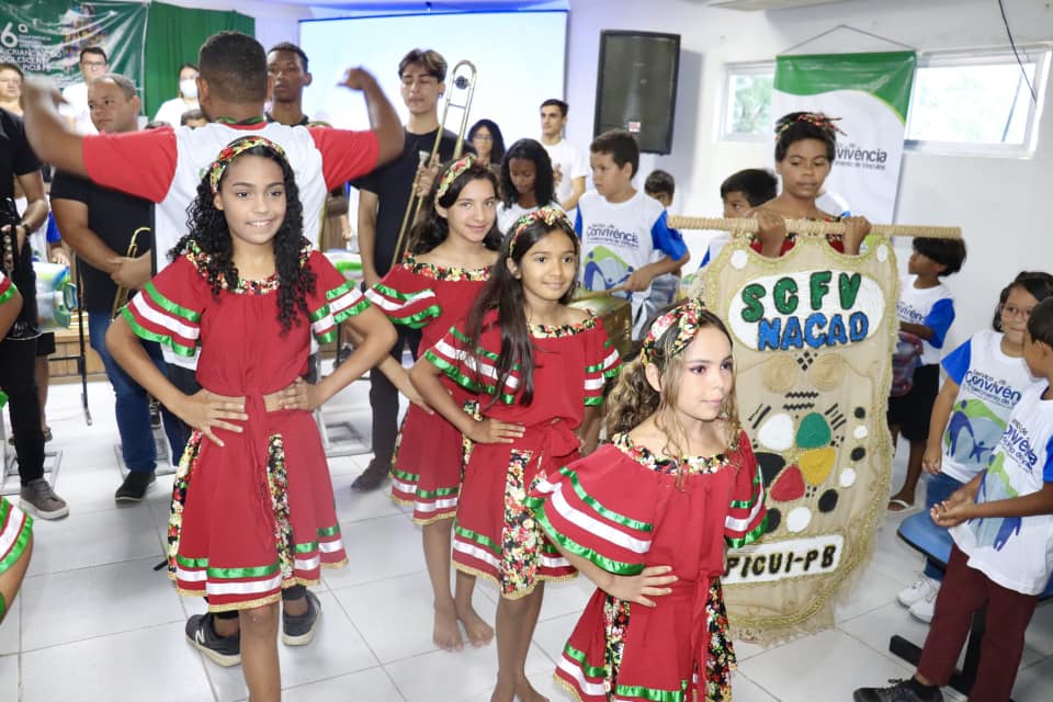 Na abertura oficial do evento, as crianças e adolescentes do Serviço de Convivência e Fortalecimento de Vínculos (SCFV) e Projeto NACAD, realizaram uma linda apresentação musical e cultural através do Latuque Arte na Lata, com a execução do Hino Nacional e da Canção de Picuí.