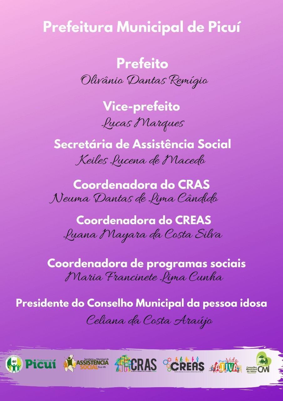 A Prefeitura Municipal de Picuí - Governo da Participação, através da Secretaria de Assistência Social, ao longo desta semana está realizando a Campanha Municipal de Enfrentamento à Violência contra a Pessoa Idosa, juntamente com os órgãos da rede de proteção do município, a fim de conscientizar toda a população picuiense acerca do combate à violência contra os idosos.