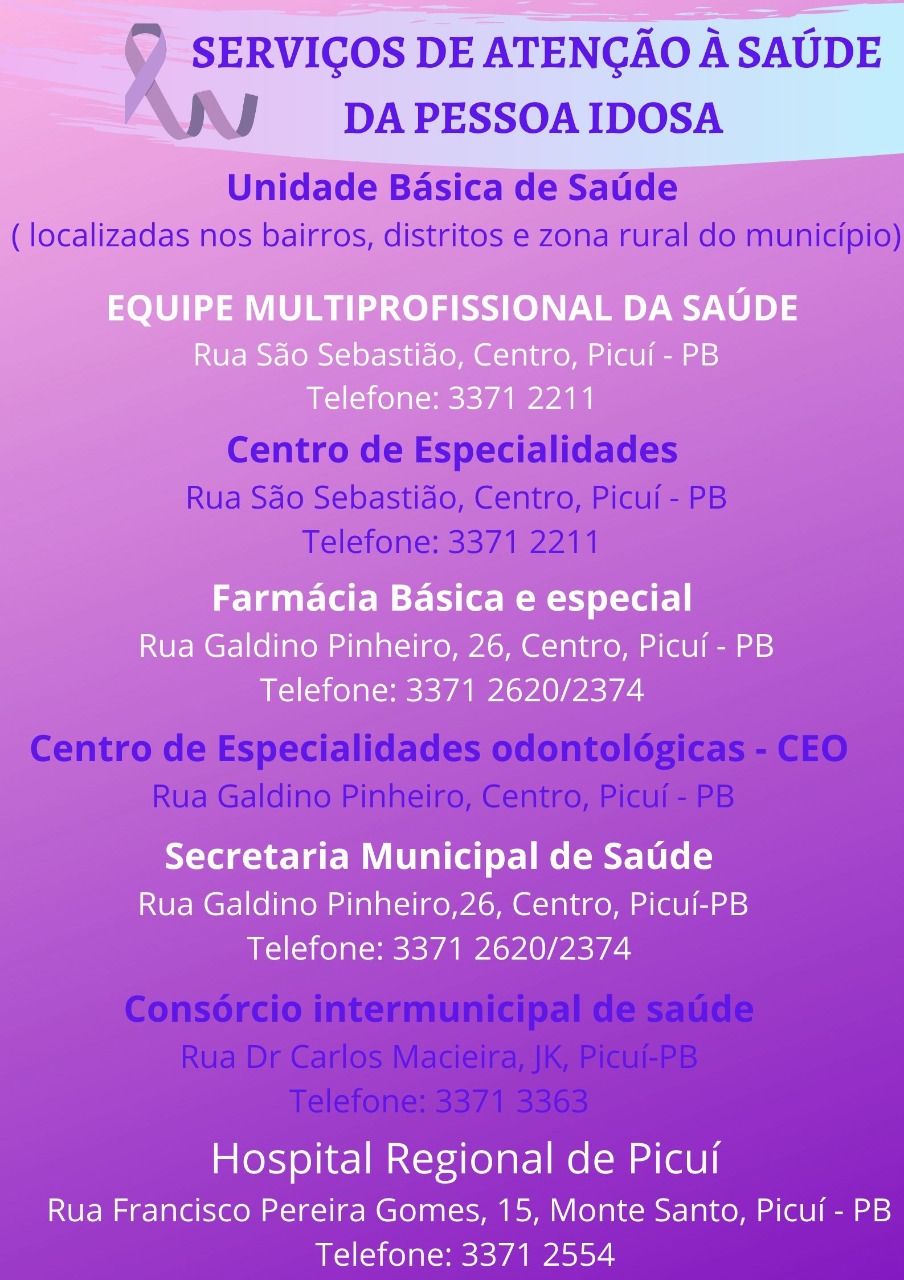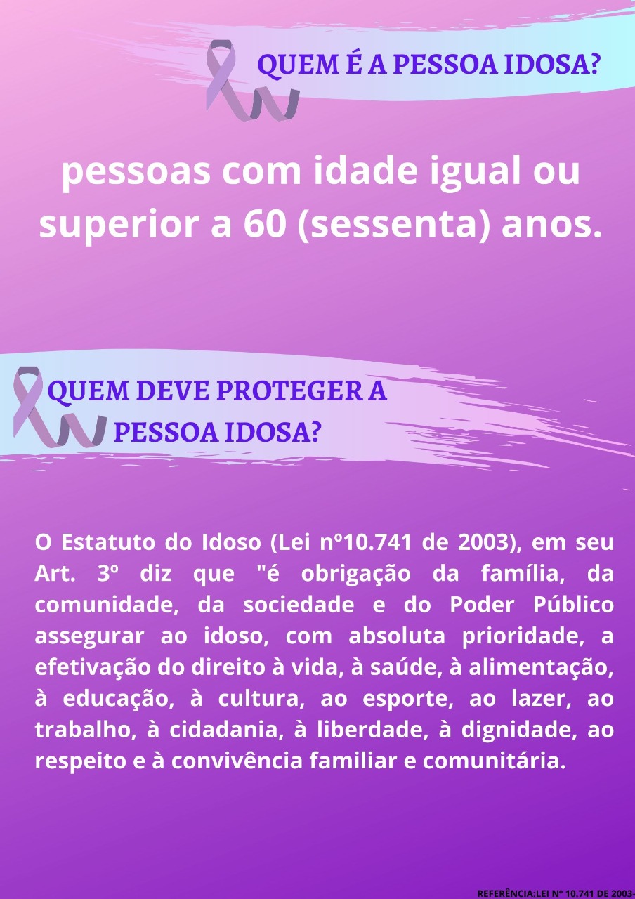 A seguir, encontra-se disponibilizada a Cartilha informativa para que a sociedade civil picuiense possa tomar conhecimento desta importante campanha se conscientizando e disseminando conhecimentos e informações pertinentes pela garantia de direitos da pessoa idosa, podendo também fazer parte da rede de proteção denunciando possíveis casos de violência e protegendo os idosos, da melhor forma possível.
