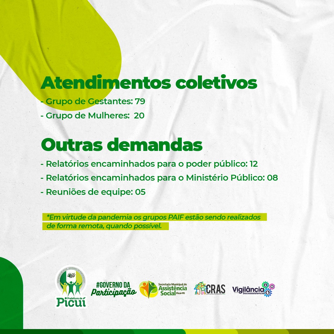 Ao apresentar o relatório semestral, foi possível quantificar o resultado do trabalho executado, e, embora, se esteja vivenciando um período de pandemia, pode-se constatar que os atendimentos realizados pelos equipamentos de referência, Centro de Referência de Assistência Social - CRAS, e Centro de Referência Especializado de Assistência Social - CREAS, vêm apresentando um aumento em suas demandas, principalmente, na proteção básica, o que retrata o aumento da vulnerabilidade social no contexto atual.