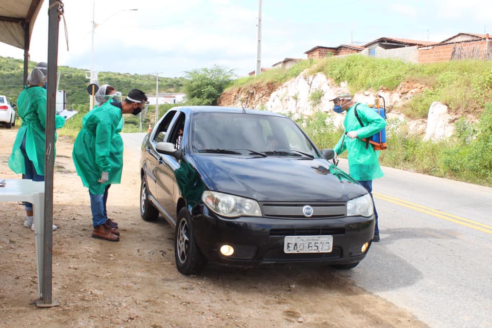 As barreiras sanitárias foram instaladas nesta segunda-feira (18), na divisa com o Rio Grande do Norte, rodovia PB 151, e na estrada que leva à Barra de Santa Rosa, Remígio e Campina Grande-PB.