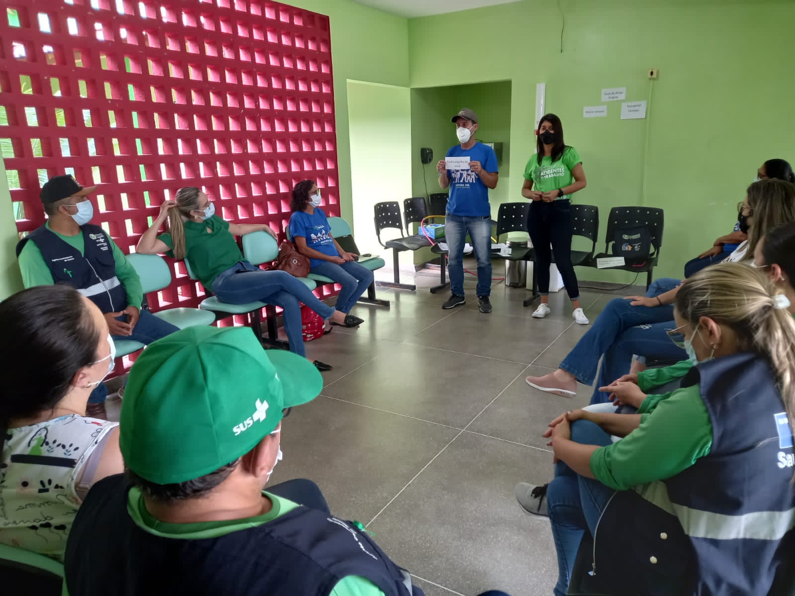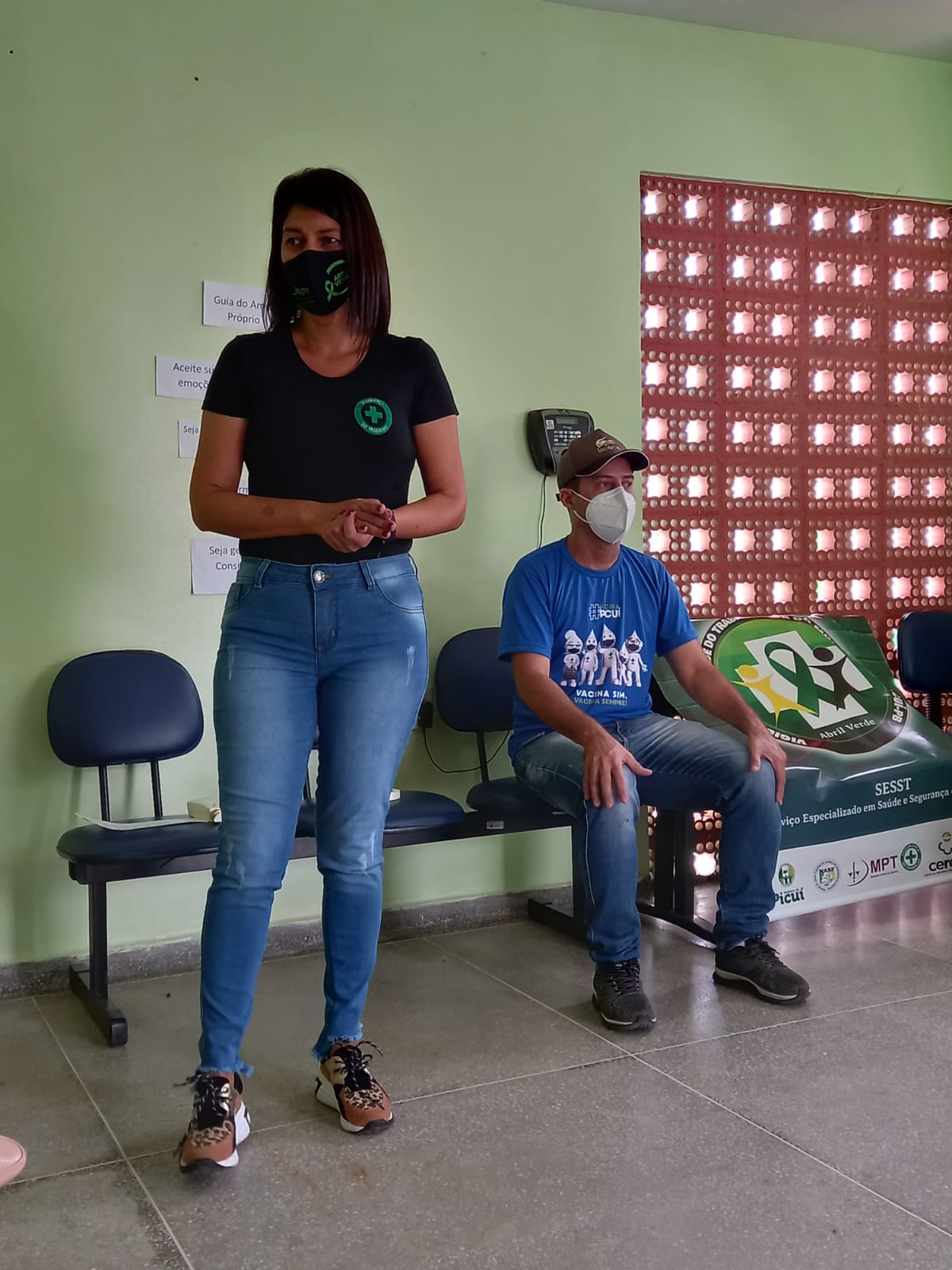 Nesta semana, a Técnica em Segurança no Trabalho, María José, esteve dando prosseguimento a programação oficial da Campanha Abril Verde, em que o profissional de Educação Física, Evandro Carlos, do NASF realizou com sucesso uma palestra com atividades educativas nas Unidades de Saúde do bairro Pedro Salustino e Cenecista.