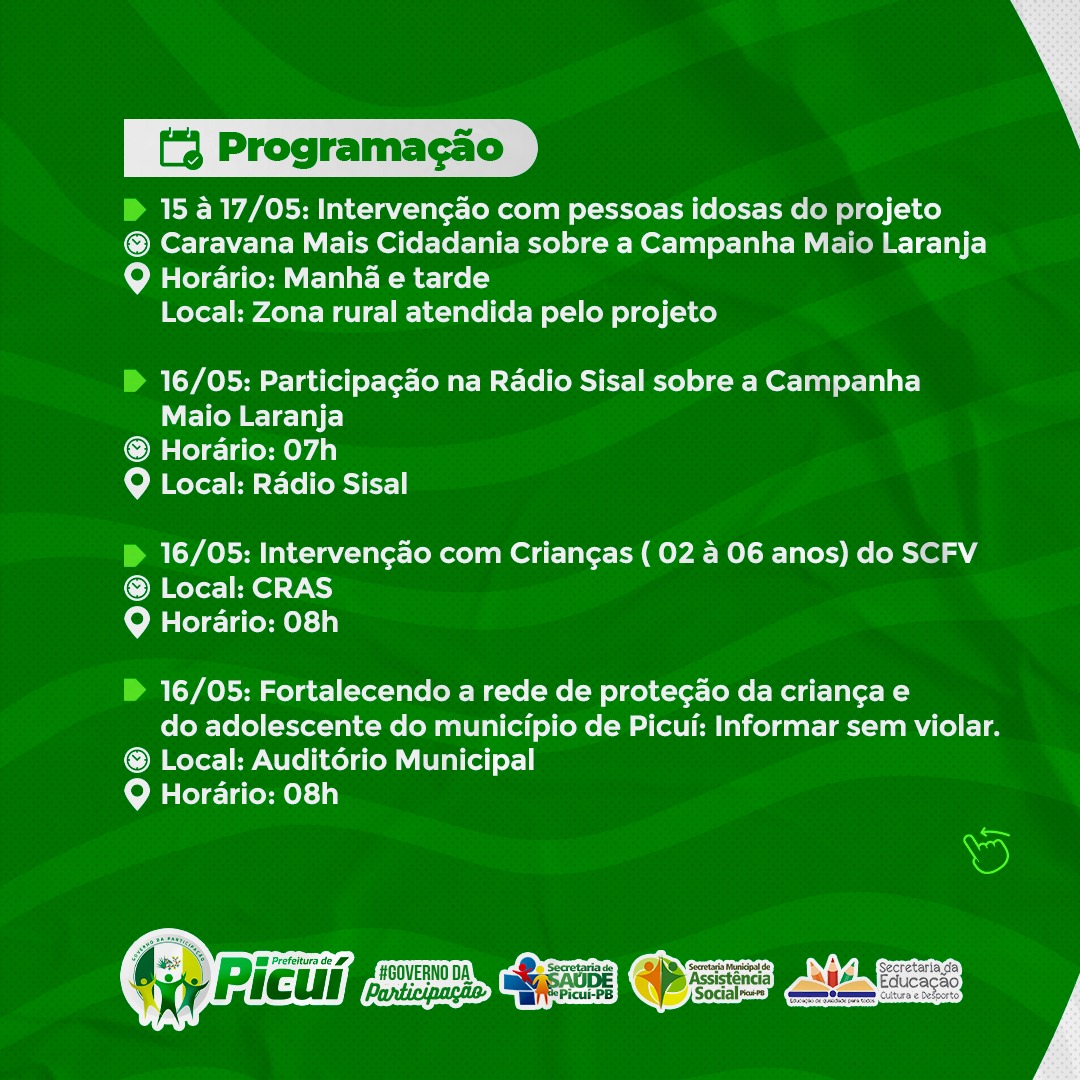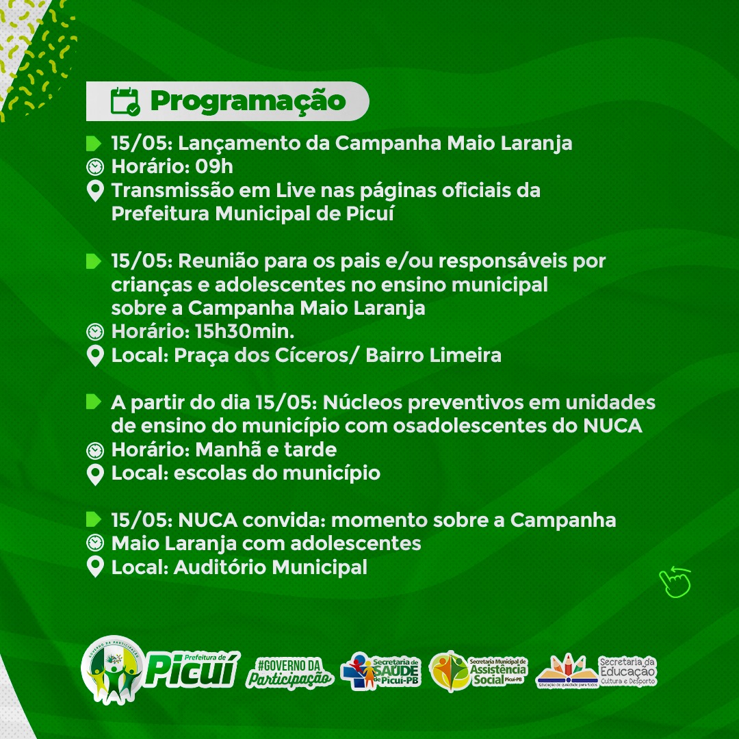 Esta ação é fruto da parceria intersetorial entre as secretarias municipais de Assistência Social, Educação e Saúde juntamente com os órgãos de proteção à criança e ao adolescente do município de Picuí.