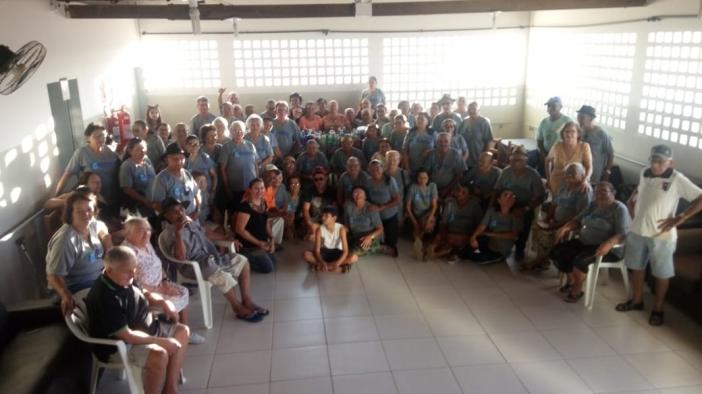 Setenta e quatro idosos que integram os projetos do Serviço de Convivência e Fortalecimento de Vínculos participaram da visita, e cada um deles levou um item de material de limpeza para contribuir com a instituição. O Grupo de Percussão "Tocando a Vida" fez uma apresentação, animando e contagiando os moradores da Pousada dos Idosos.