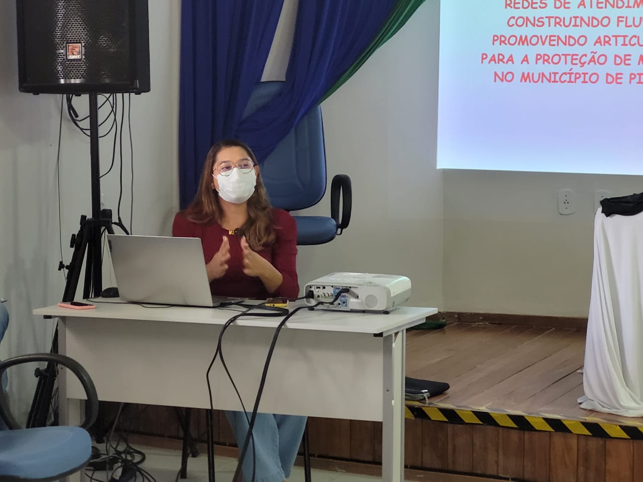 Após esse momento, foi realizada uma Apresentação e explanação acerca da Rede de Atendimento e de Enfrentamento, em defesa dos direitos das mulheres, bem como também do trabalho desenvolvido no município de Picuí, por Jucilene Barbosa, Diretora dos Programas Sociais do município.