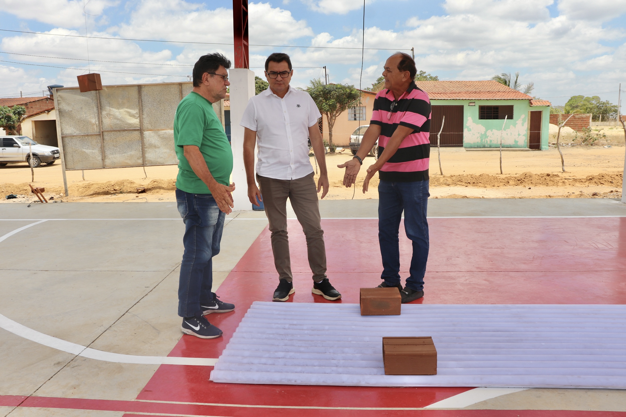 Segue a todo vapor a construção da quadra esportiva na comunidade do Distrito de Santa Luzia que irá beneficiar a comunidade local, por meio da Secretaria de Educação, Cultura e Desporto, através da EMEF Macário Zulmiro.