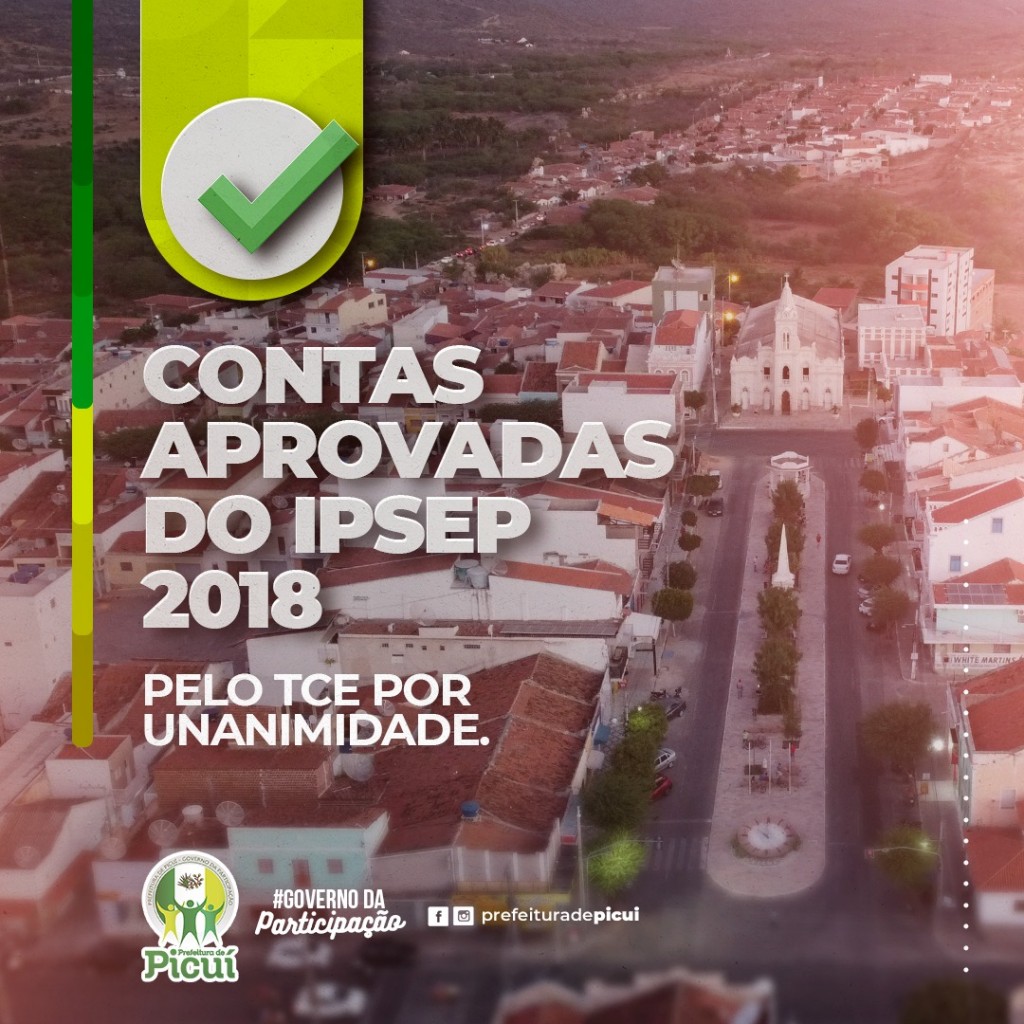 A Prefeitura Municipal de Picuí - Governo da Participação II, vem a público comunicar a aprovação por unanimidade das contas do Instituto de Previdência Social do município, o IPSEP, relativas ao ano de 2018, pelo Tribunal de Contas da Paraíba (TCE).