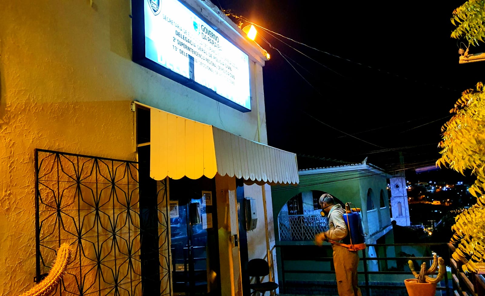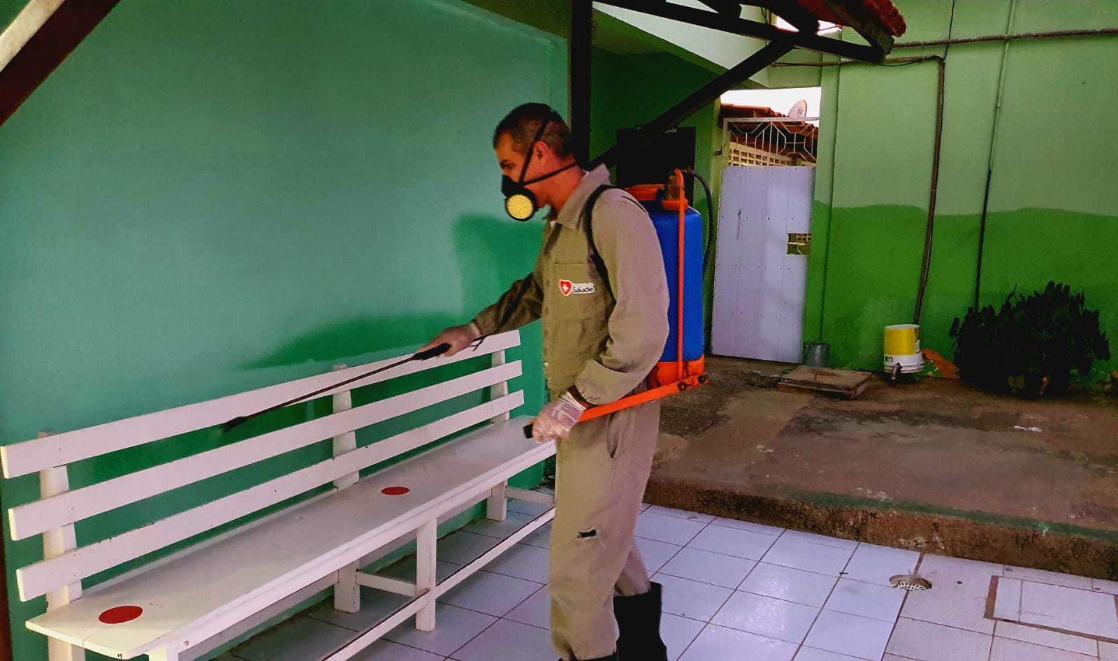 O processo está sendo realizado com o uso do Hipoclorito a 1%, que é utilizado para o combate a diversos vírus, incluindo o COVID-19. A desinfecção ocorre apenas na parte externa dos ambientes que é passagem das pessoas.