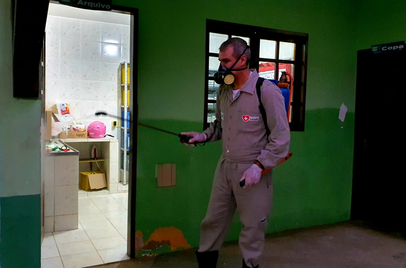 Os agentes de combate as endemias (CVAMS) vem realizando, ao longo das últimas semanas, a desinfecção de ambientes públicos como Unidades Básicas de Saúde, Hospital Regional, agências bancárias, praças e demais prédios públicos que estão funcionando em atendimento ao público.
