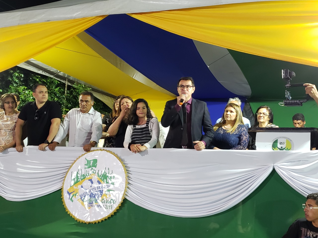 o Desfile Cívico Municipal, aconteceu o descerramento dos pavilhões nacional,