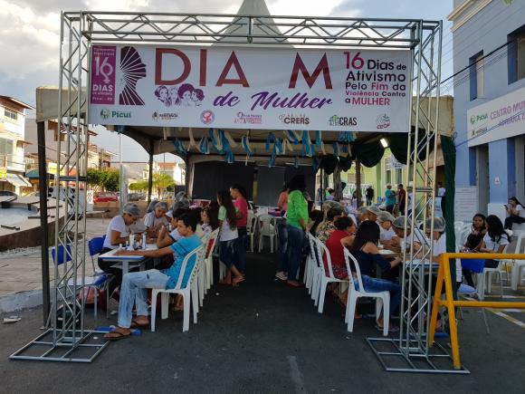 Aconteceu nessa sexta, 07 de dezembro, o DIA M DE MULHER, culminância dos “16 Dias de Ativismo pelo Fim da Violência contra a Mulher”. O evento começou as oito horas, na Feira Agroecológica, com o “Ato em Defesa da Vida e Empoderamento das Mulheres”, roda de conversa onde participaram o prefeito Olivânio Remígio, a presidente do CEOP Aparecida Firmino, a secretária de Assistência Social Keiles Lucena, a coordenadora de Políticas Públicas para Mulheres Adriana Lucena, o secretário de Agricultura Ranieri Ferreira, o psicólogo do NASF Daniel Macedo, técnicas do CRAS e do CREAS e Baíca, participante da Feira Agroecológica.