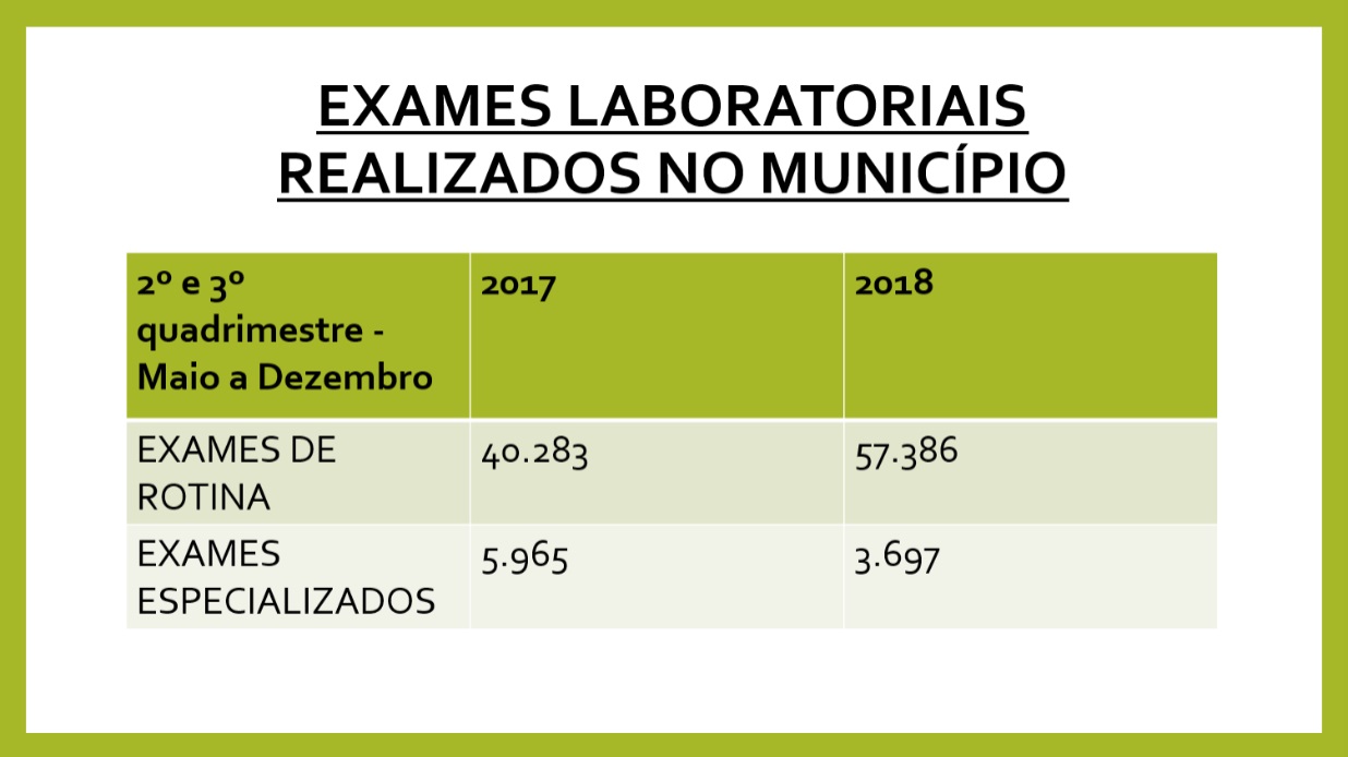 De acordo com levantamento realizado pela Secretaria Municipal de Saúde apresentado na Câmara Municipal de Picuí na última sexta-feira (22) em que aponta o balanço das ações quadrimestrais da pasta. A Secretária Janaína Almeida destacou o aumento no número de exames laboratoriais.