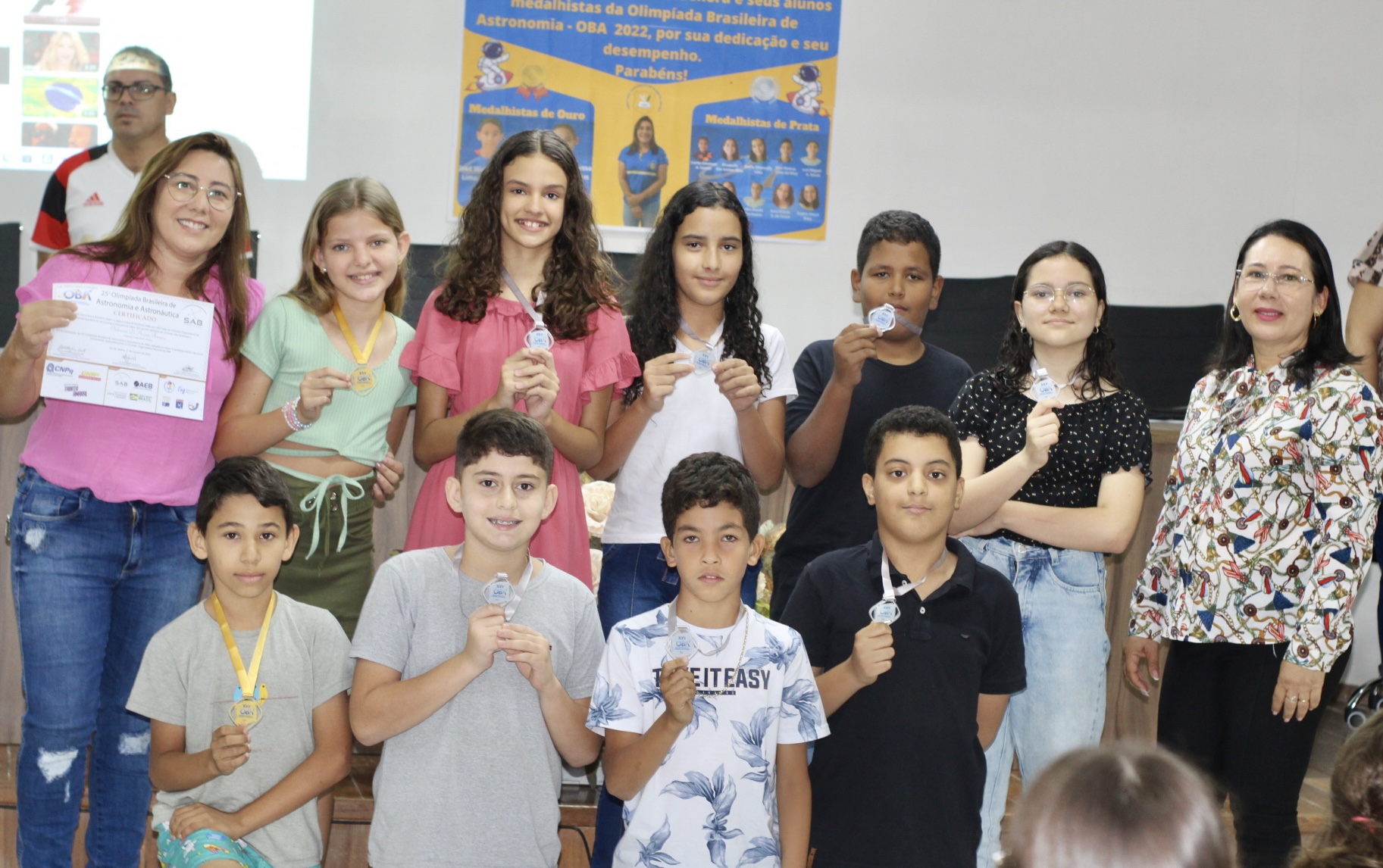 Na manhã de ontem (29), foi realizada com sucesso a solenidade oficial de entrega das medalhas e certificados aos alunos da EMEF Tancredo de Almeida Neves que participaram da 25a Olimpíada Brasileira de Astronomia e Astronáutica (OBA).