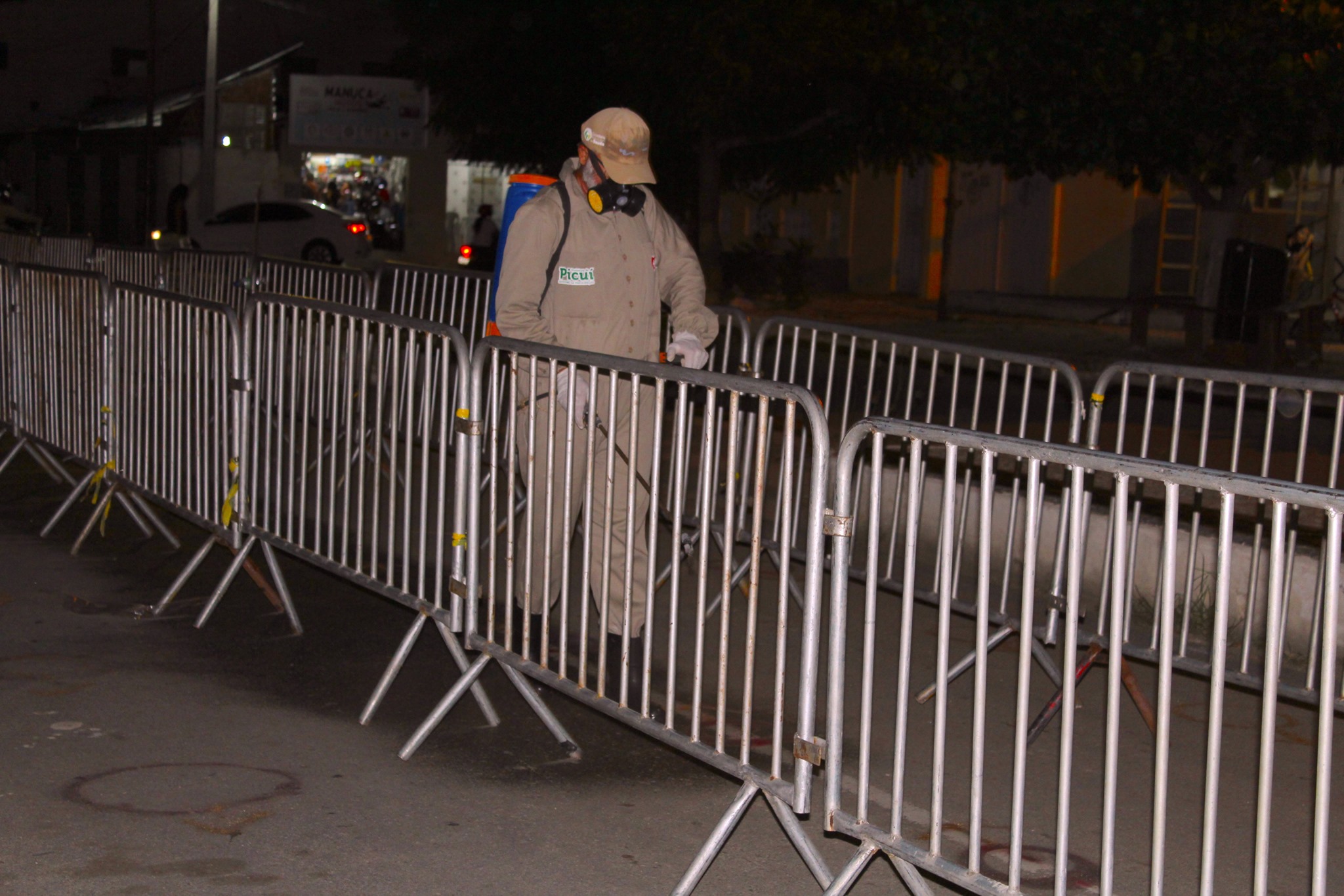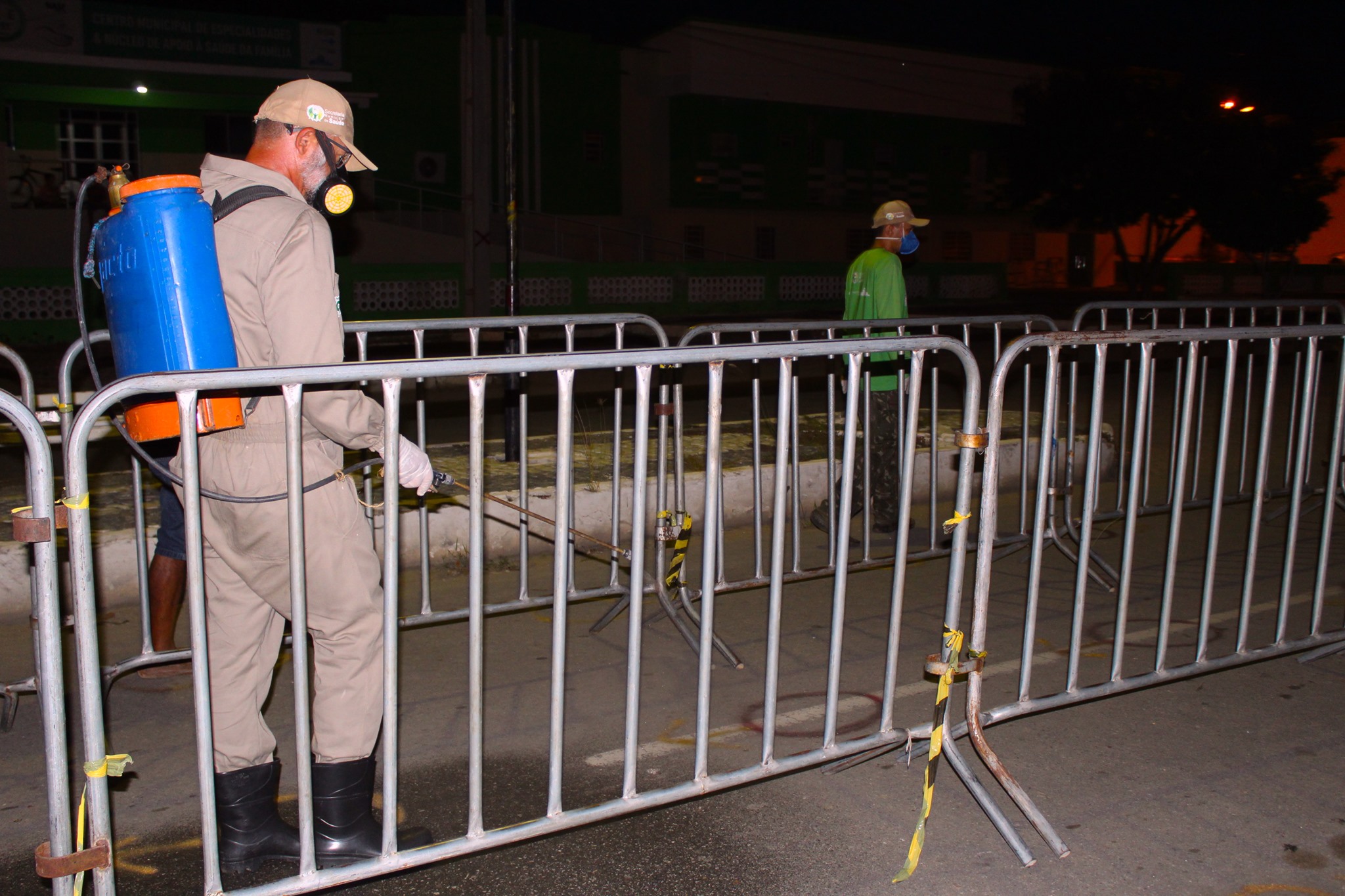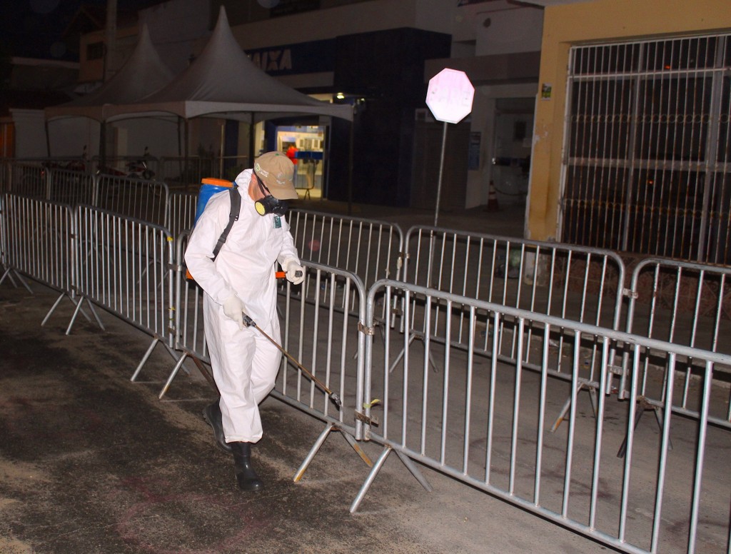 A Equipe do CVAMS esteve, no início da noite de ontem (04/05), realizando a desinfecção de toda a área, em frente à Caixa Econômica Federal, que foi ocupada pelas filas. O processo foi feito com o uso do Hipoclorito a 1%, que é utilizado para o combate a diversos vírus, incluindo o COVID-19. A desinfecção ocorre apenas na parte externa dos ambientes que é passagem das pessoas.