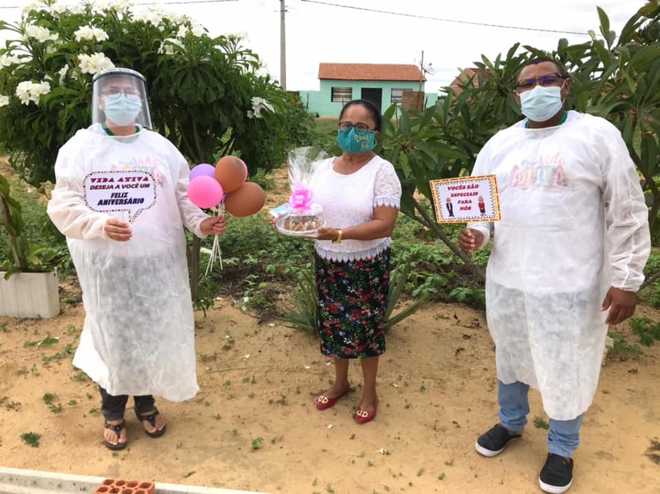 Nesta última terça-feira (04), a equipe responsável do Projeto Social Vida Ativa realizou mais uma ação itinerante importante, a fim de manter o vínculo com os beneficiários, na entrega de bolos de aniversário para os idosos contemplados com o projeto que residem nos Distritos de Santa Luzia e Serra dos Brandões que fizeram idade nova nos meses de janeiro, fevereiro, março e abril deste ano.