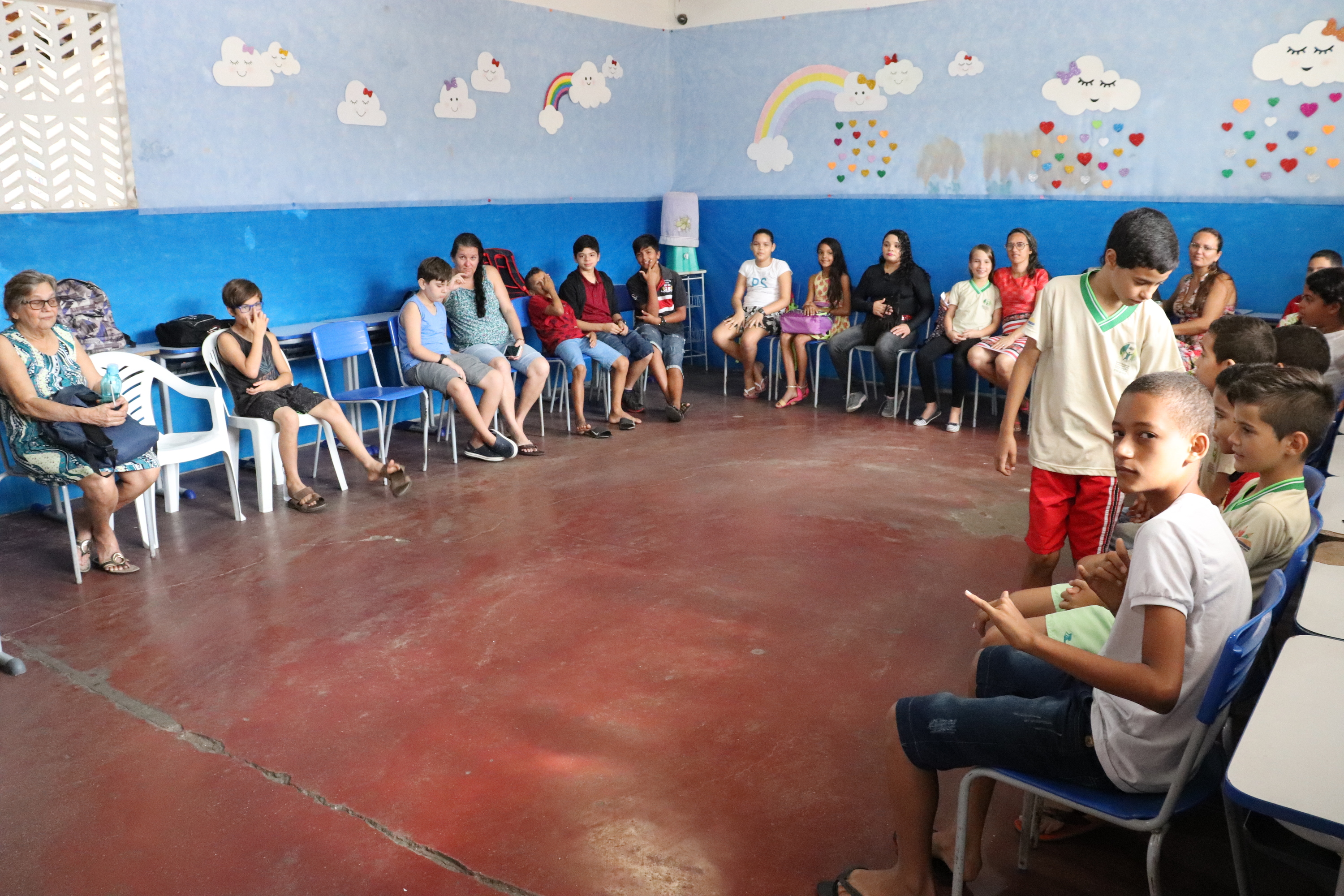 Na escola municipal Flávio Ribeiro, localizada no bairro Monte Santo, os membros de cada família foram recepcionados pelas gestoras escolares no portão principal e acolhidos num espaço para fotos em família. Logo após cada estudante se dirigiu juntamente com seus familiares para as salas de aula, onde participaram de uma dinâmica de apresentação sob a coordenação de cada professor(a).