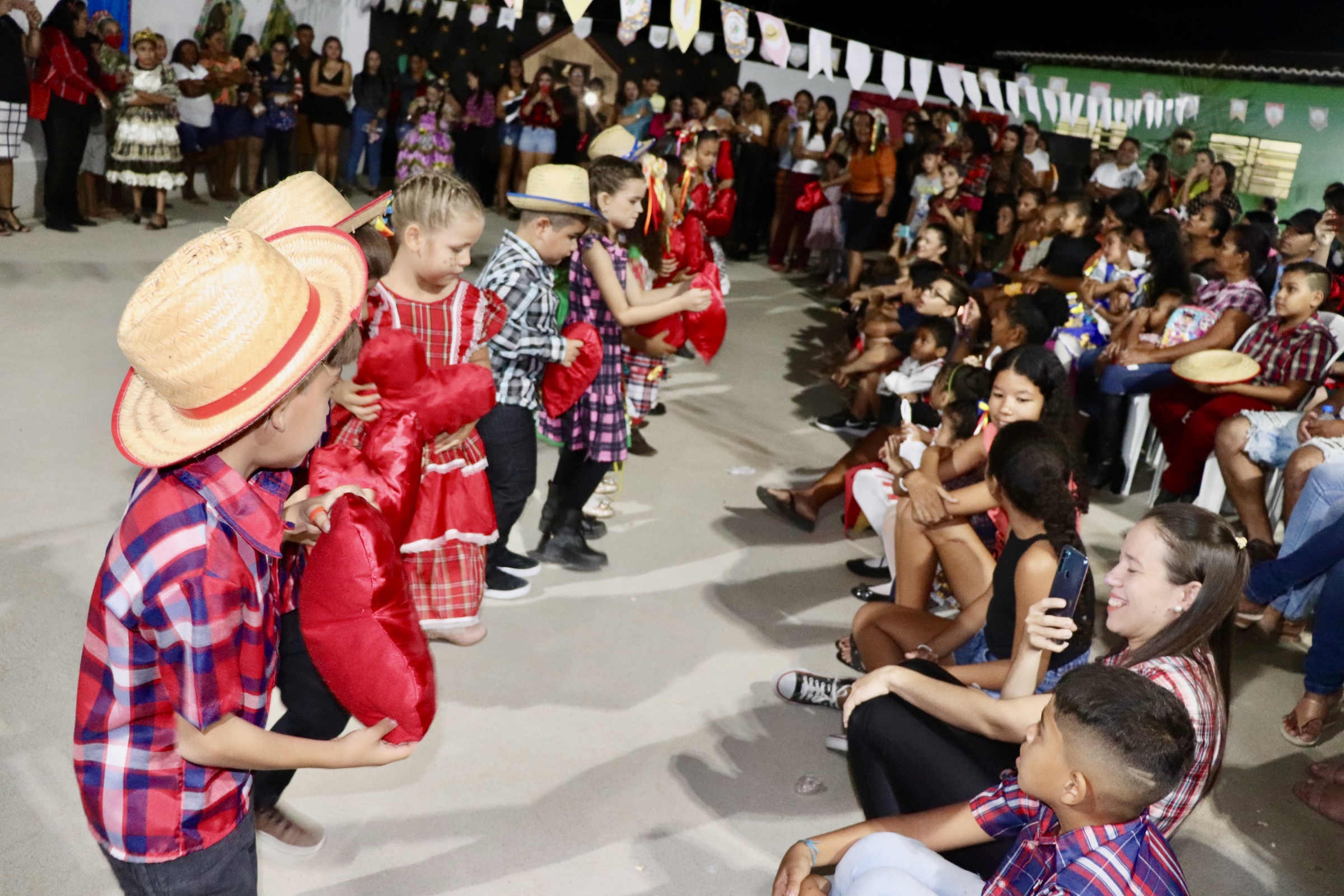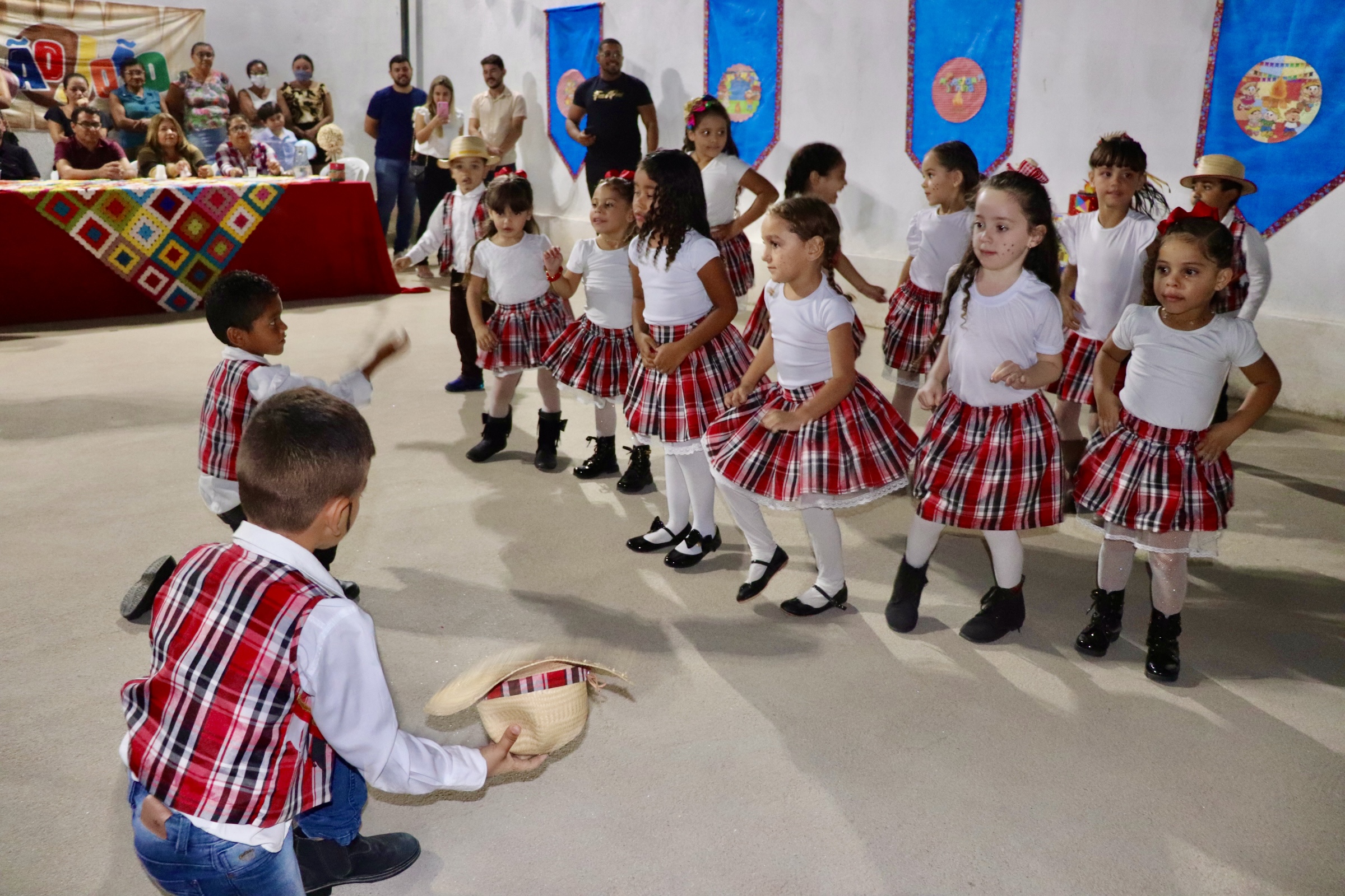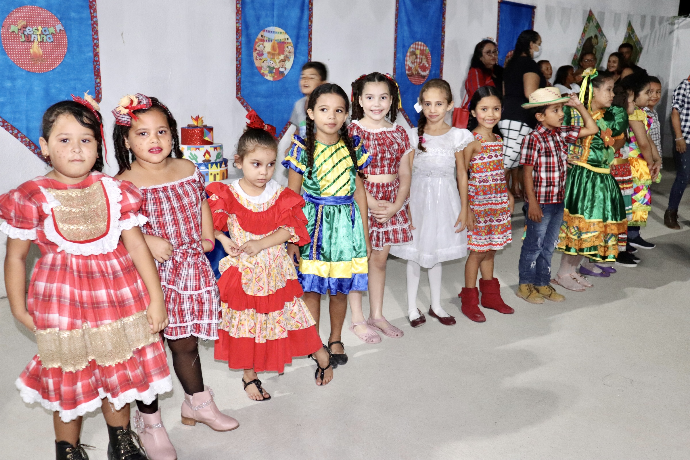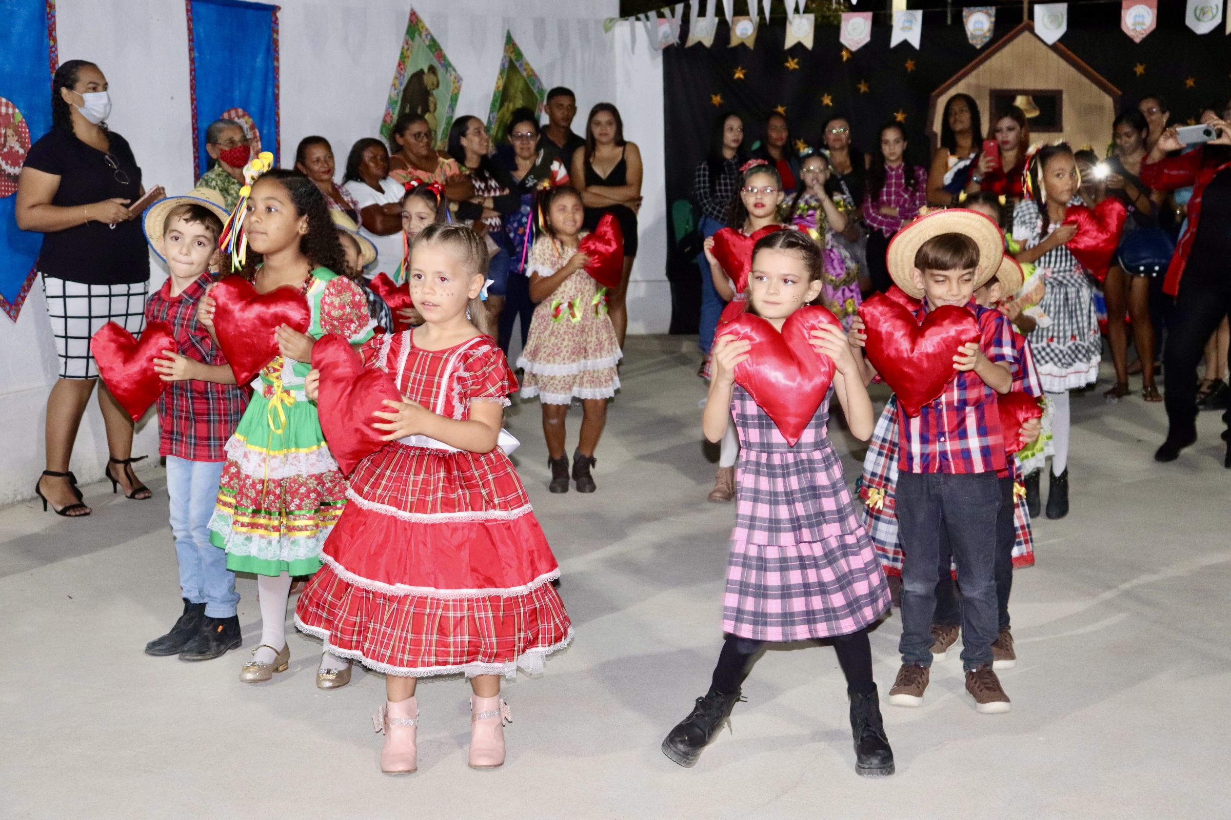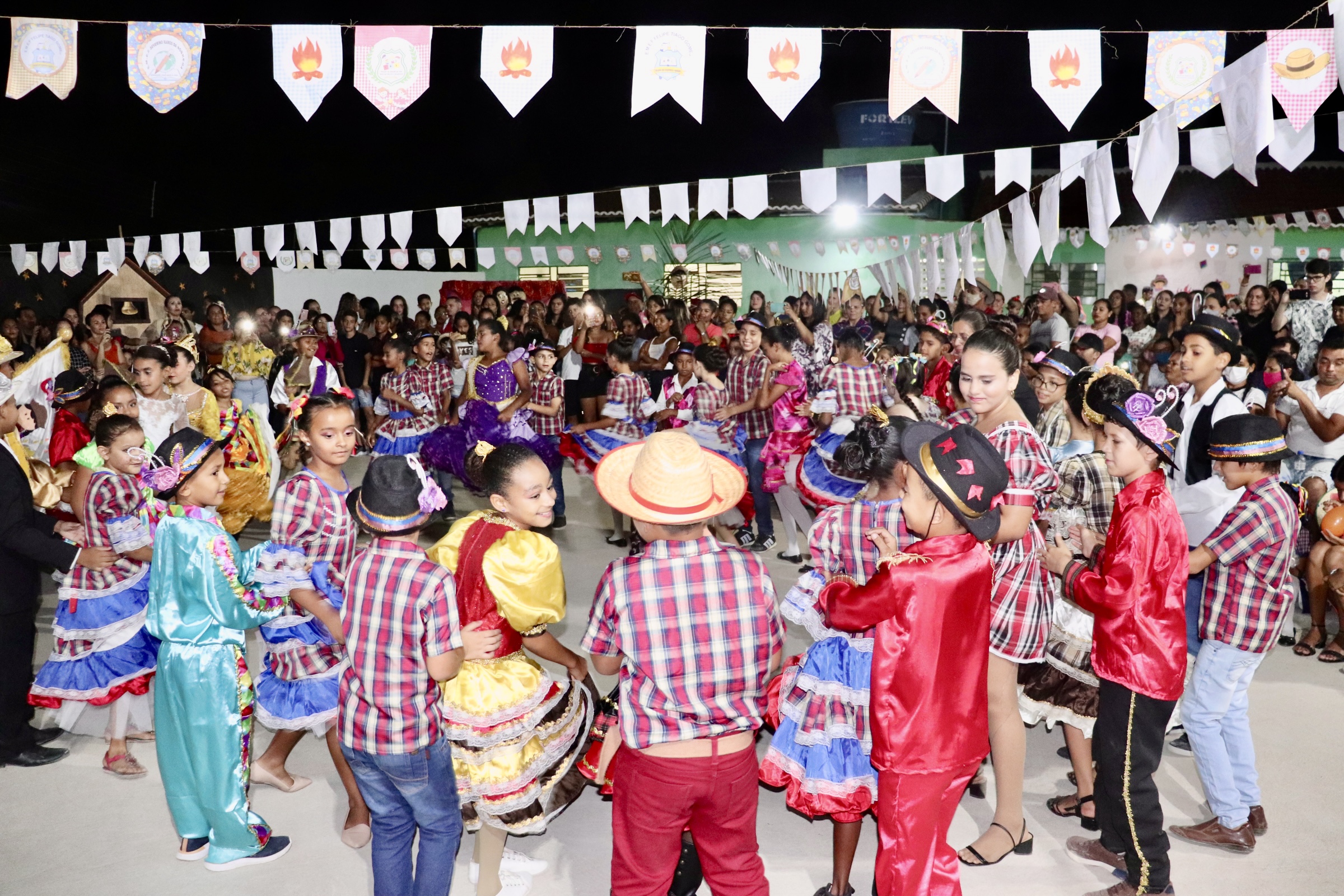 Os alunos se mostraram bastante entusiasmados com a volta presencial das festividades juninas e realizaram brilhantes apresentações, sensibilizando e emocionando os pais, a comunidade escolar e os gestores e autoridades presentes.