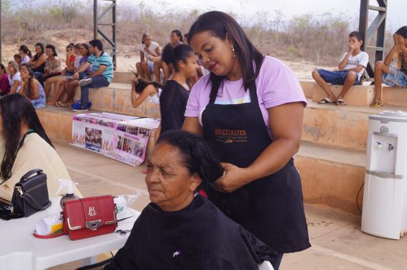 A feira de serviços contou com a realização de ações como um dia de beleza, através do projeto Florescer Mulher, atualização do cadastramento do bolsa família e serviços de convivência dos idosos.