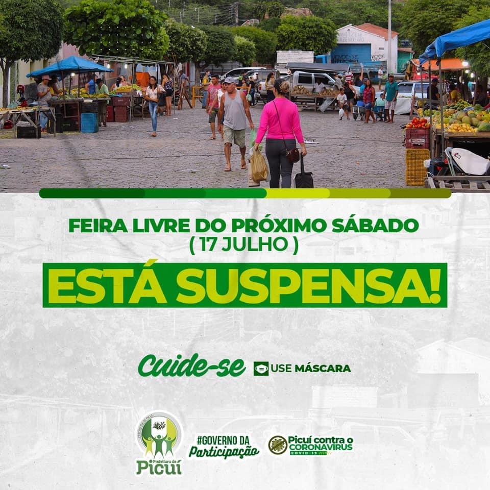 Em virtude do considerável aumento no número de casos ativos de COVID-19, nesta semana, no município de Picuí, a Feira Live continuará suspensa.