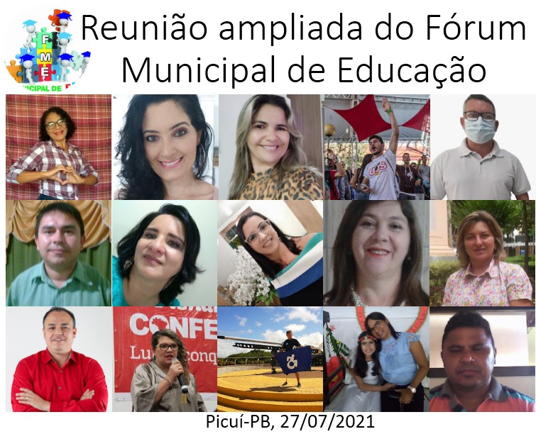 dia Na última terça-feira (27), foi realizada uma reunião com o Fórum Municipal de Educação do Município de Picuí (FME) com o objetivo de apresentar a proposta da II Conferência Intermunicipal Popular de Educação da 4ª Região de Ensino (CMPE), que compreende os municípios de Cuité, Cubati, Baraúna, Barra de Santa Rosa, Damião, Frei Martinho, Nova Floresta, Nova Palmeira, Pedra Lavrada, Picuí, São Vicente do Seridó, Sossego, como etapa preparatória para a Conferência Estadual Popular de Educação (CONEPE), que será realizada nos dias 09 e 10 de dezembro de 2021 e Conferência Nacional Popular de Educação (CONAPE), que será realizada no período de 10 a 12 de junho de 2022, em Natal.