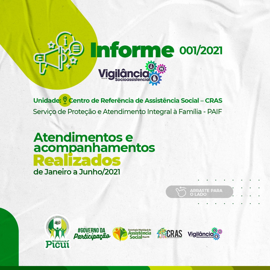 No primeiro semestre de 2021, a Secretaria de Assistência Social tem desenvolvido uma série de atividades e trabalhos em prol da população picuiense, especialmente através do Centro de Referência da Assistência Social - (CRAS).