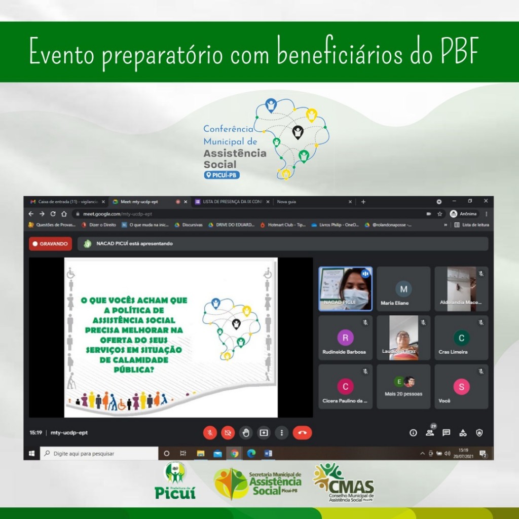 O Conselho Municipal de Assistência Social, a Prefeitura de Picuí e a secretaria de Assistência Social estão realizando os eventos preparatórios para a IX Conferência Municipal de Assistência Social, que acontecerá entre os dias 27 e 28 de Julho.