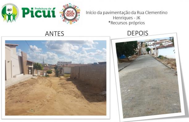 Seguindo o cronograma do programa Picuí Cidade Nova, novas ruas estão sendo agraciadas com pavimentações. Moradores que já haviam perdido a esperança em ver a rua pavimentada, hoje usam as redes sociais para externar a alegria em ver sua rua pavimentada. Os moradores da Rua Clementino Henriques da Costa no Bairro JK, usaram as redes sociais para agradecer os bons feitos. A Rua era intransitável, não passava sequer bicicleta, devido a inclinação e o riacho do ‘kocó’ que corta o logradouro ao meio. Em menos de 15 dais, a população viu a rua se transformar, assim como destacou Edjalys Barros que publicou em seu perfil no Facebook: Agradecemos ao prefeito Olivânio Remígio pela conclusão do calçamento da Rua Clementino Henriques. Avante com mais trabalho para todos. A moradora Deta Silva também se manifestou a respeito, publicando fotografia do ante e depois da rua pavimentada.