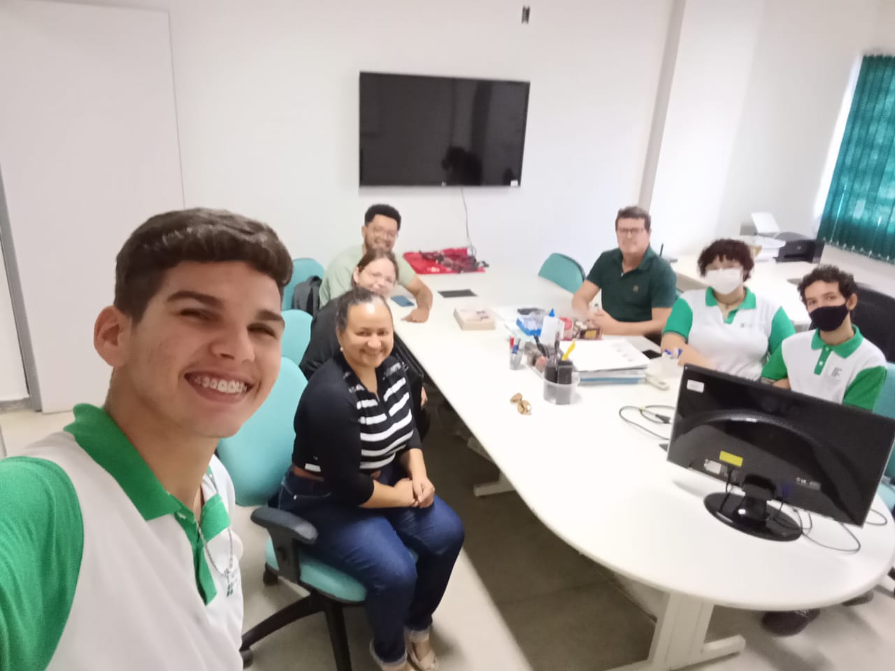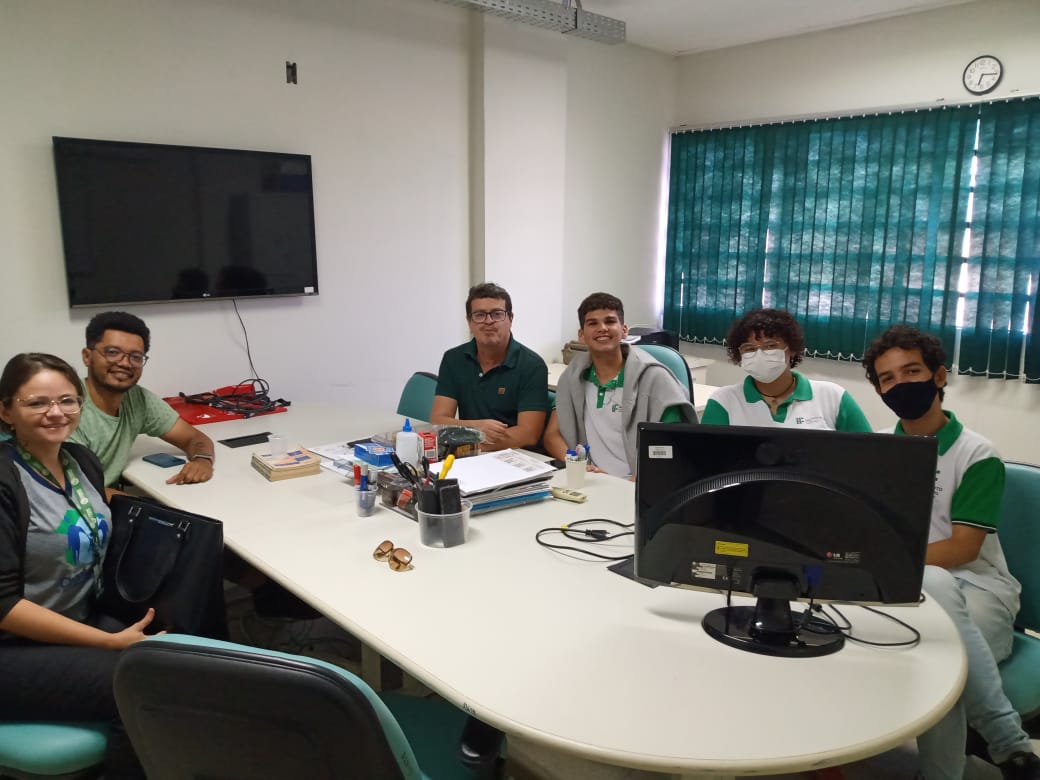 Na manhã desta quinta, 18, a coordenadora de Vigilância Socioassistencial, Rejane Miranda, a coordenadora do Projeto Jovem de Futuro, Eva Dantas, e o oficineiro de cursos profissionalizantes, Lailson Herondino, estiveram reunidos com o coordenador do curso de informática do IFPB Campus Picuí, Lucius Vinícius, e alunos concluintes do curso do informática, Júlio, Ana e Gutemberg, para tratar da oferta de um curso de informática para os usuários do Projeto Jovem de Futuro.