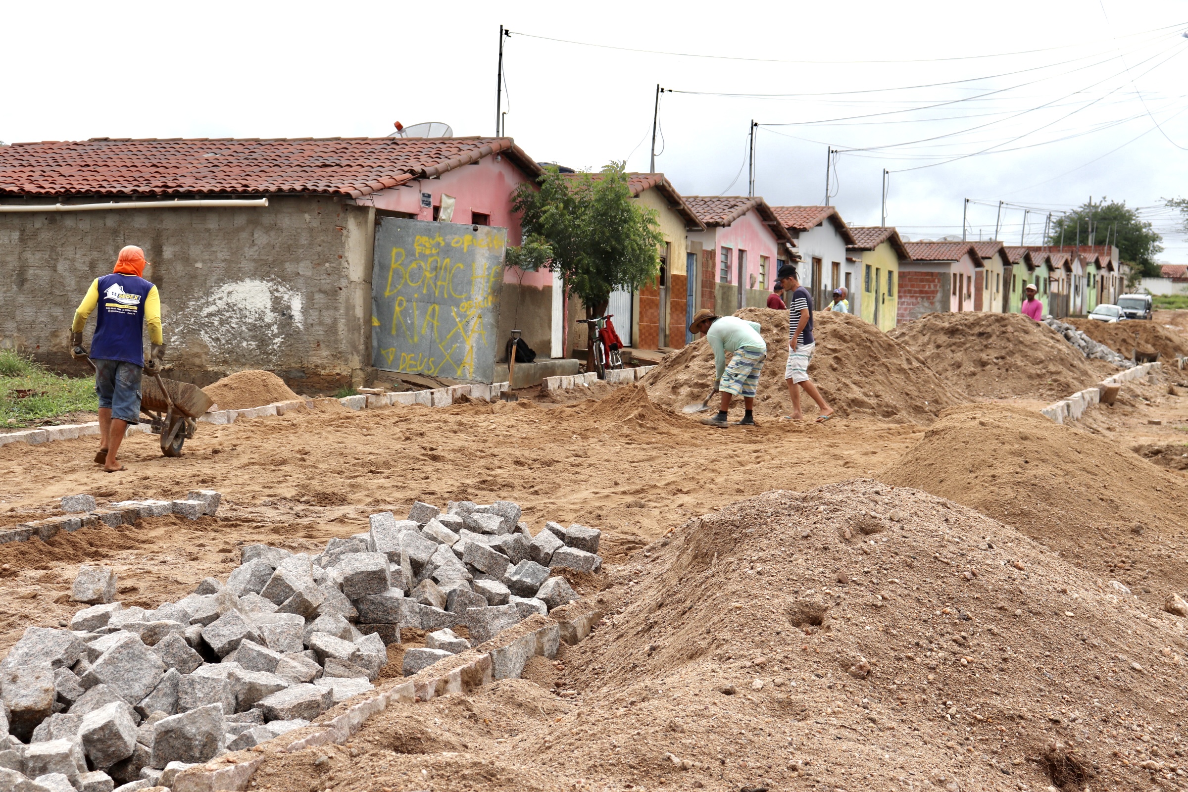 Até o momento, as ruas Tertuliano Pereira, José Egídio de Lira e Travessa João Bilhete foram pavimentadas e o trabalho das equipes técnicas segue na rua Maria das Graças Agra.