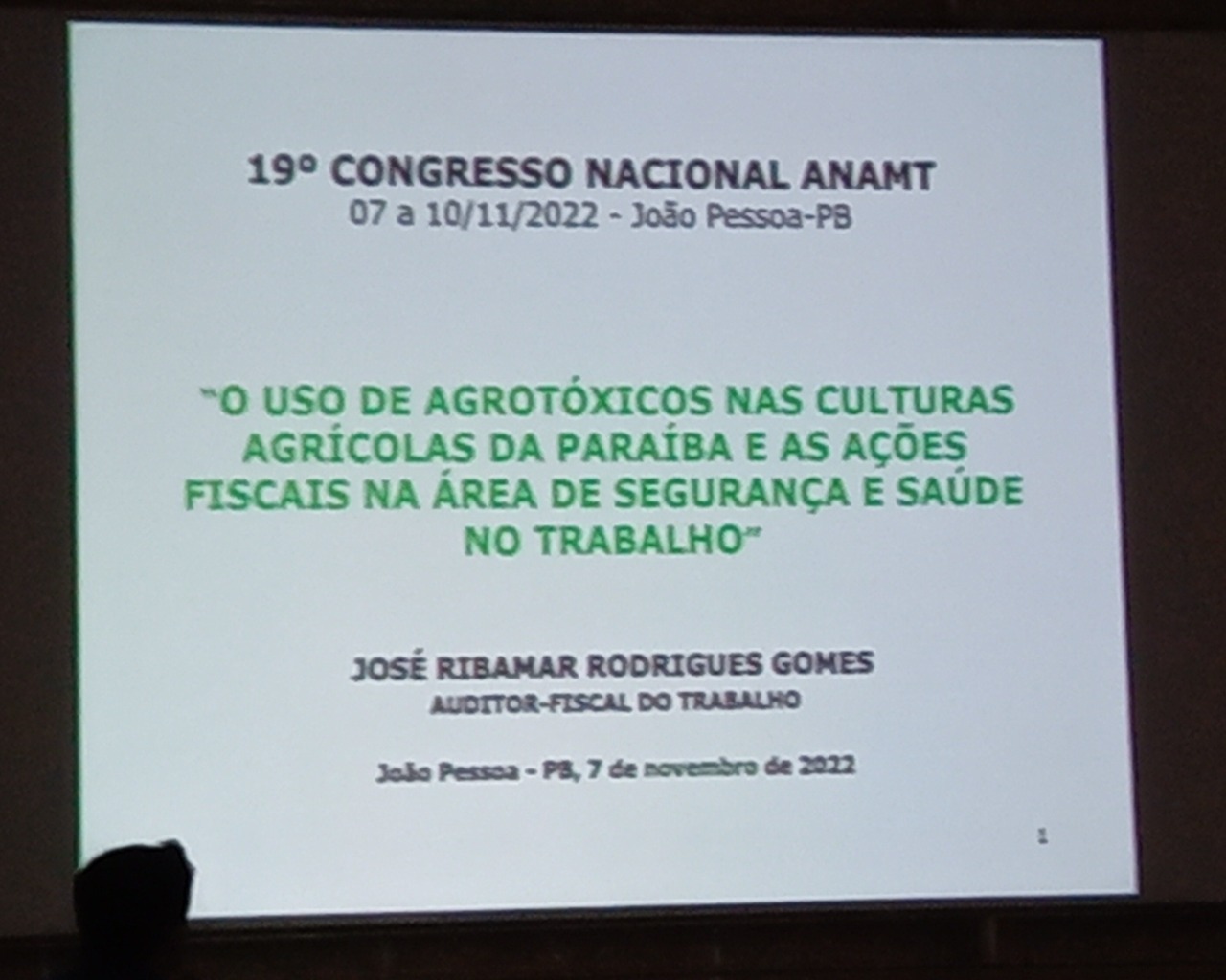2º Tema: Vigilância da saúde das populações expostas à agrotóxicos na PB (José Ribamar Rodrigues Gomes - Médico do Trabalho e Auditor Fiscal do da SRTE-PB ).