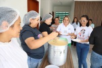 A programação seguiu com a leitura do regulamento da conferência, feita por Jucilene Barbosa, membro da Comissão Organizadora. Em seguida, um intervalo foi realizado com um lanche servido no hall de entrada. Importante destacar que, conforme as diretrizes da conferência, a participação nas atividades da tarde foi exclusiva para mulheres.