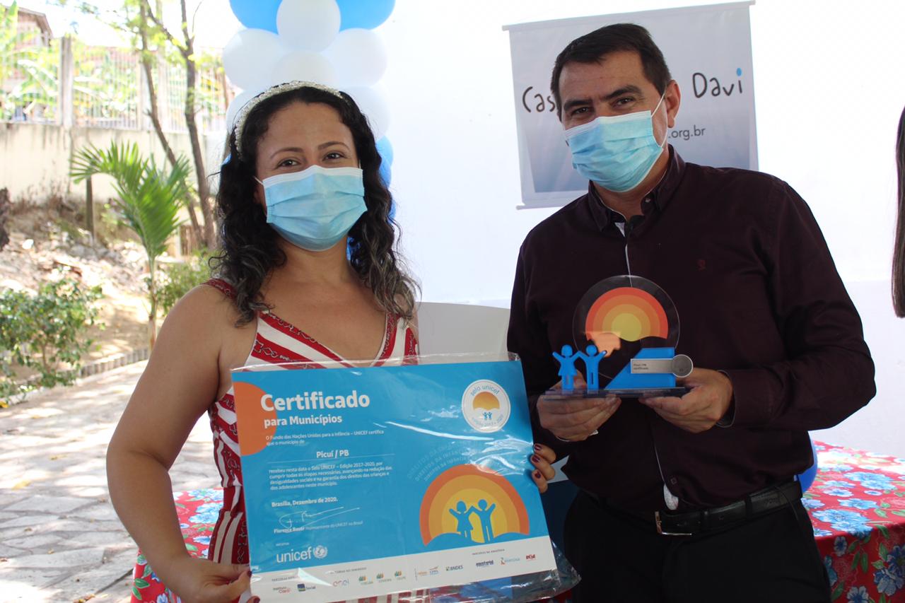 Na manhã desta quarta-feira (16), o prefeito constitucional de Picuí, Olivânio Remígio, acompanhado da Secretária Municipal de Educação, Maria da Guia Lucena, a mobilizadora do NUCA, Rayane Lucena, Gustavo Guedes, adolescente integrante do NUCA e a advogada e jornalista Fabiana Agra que também contribuiu no processo de articulação do selo UNICEF no município, estiveram na ‘casa pequeno Davi’, em João Pessoa na cerimônia de certificação dos municípios vencedores, e na oportunidade, o prefeito Olivânio recebeu a premiação do selo UNICEF, em reconhecimento pelo trabalho realizado nos últimos 3 anos e 11 meses de gestão. Picuí foi um dos 30 municípios paraibanos certificados com o Selo, fruto da efetivação de políticas públicas voltadas às crianças e adolescentes Picuienses.