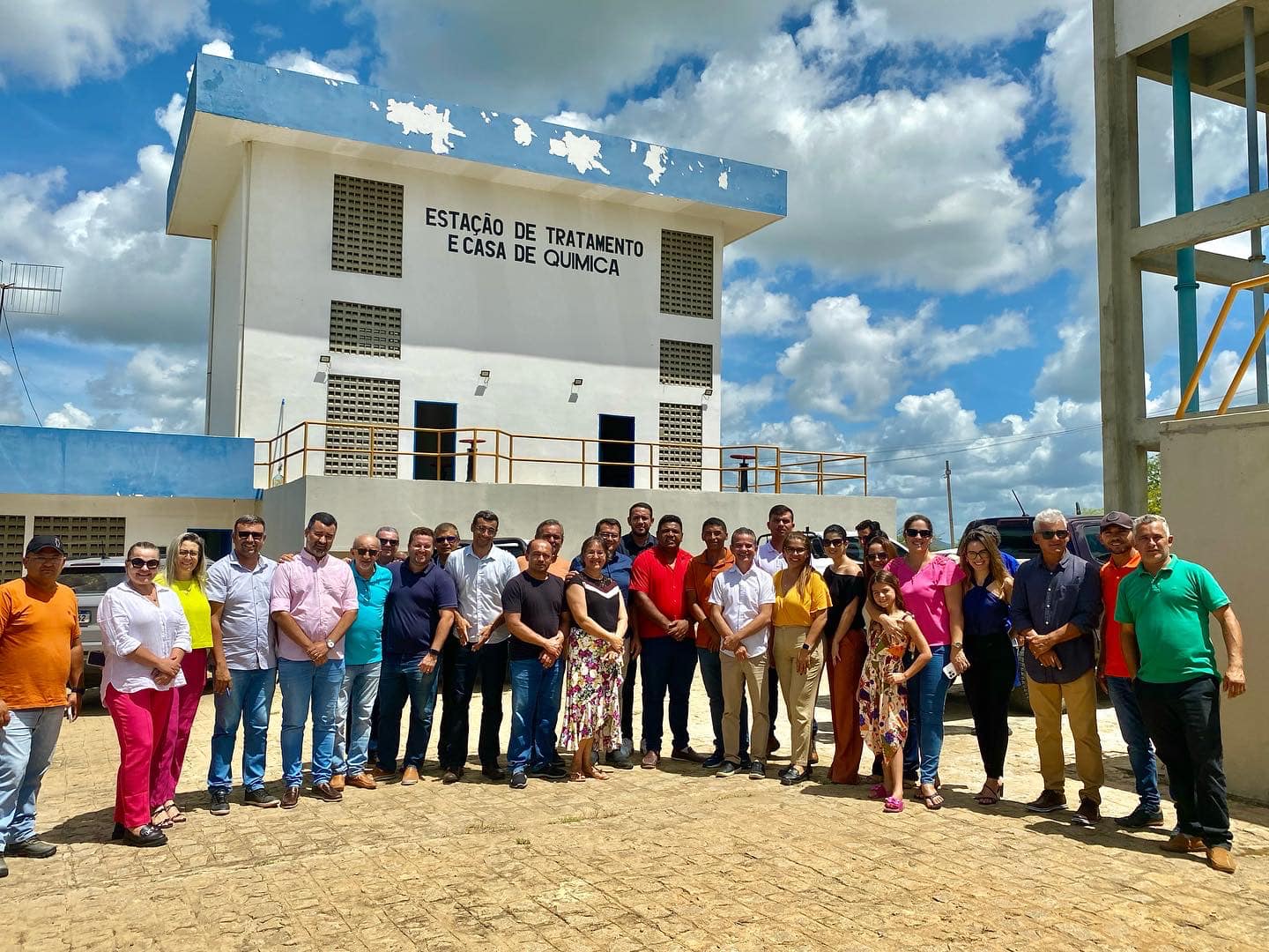 Na oportunidade, as autoridades foram até o açude Caraibeira que está com 50% de sua capacidade e, logo após a visita, foram até a ETA - Estação de Tratamento de Água, realizando a abertura oficial das torneiras para início do abastecimento do município.