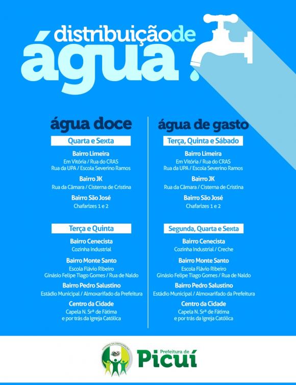 PREFEITURA DE PICUÍ AMPLIA DE DOIS PARA SEIS DIAS O ABASTECIMENTO DE ÁGUA EM TODA CIDADE