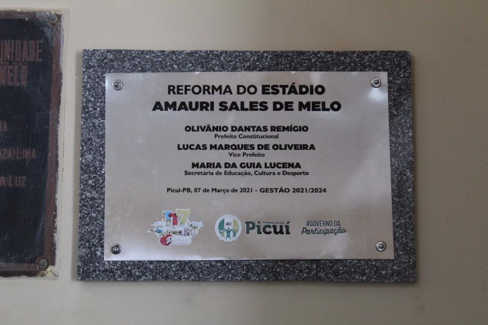 Nesta manhã (07), o prefeito Olivânio Remígio, a secretária de Educação, Cultura e Desporto, Guia Lucena, o Diretor de Esportes, Adriano Bento, e os demais secretários municipais inauguraram oficialmente o novo gramado e a reforma do Estádio Amauri Sales de Melo. Mais um feito do Governo da Participação, em prol do esporte picuiense.