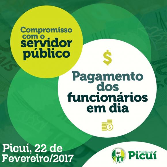 A Prefeitura de Picuí pagará os servidores municipais nesta quarta-feira, 22/02, injetando no município a quantia superior a R$1,5 milhão fazendo com que a parte financeira do município continue a ter capital de giro e investimentos por parte do servidor público.