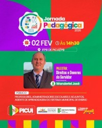Com foco na formação continuada, no diálogo e nos desafios da educação contemporânea, a Prefeitura de Picuí, por meio da Secretaria Municipal de Educação, Cultura e Desporto, realiza no próximo dia 02 de fevereiro, no IFPB – Campus Picuí, a Jornada Pedagógica 2026, voltada à Rede Municipal de Ensino. O evento conta com o apoio do Instituto Federal da Paraíba – Campus Picuí, fortalecendo a parceria institucional em prol da educação pública de qualidade.