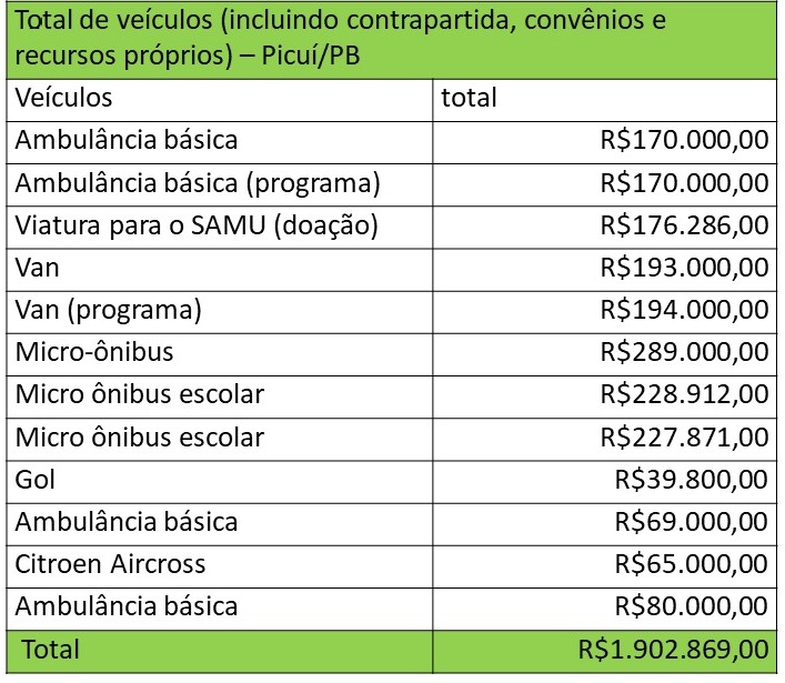A prefeitura de Picuí, possui uma frota de veículos significativa, no entanto, muitos desses já estão sucateados, seja pelo uso constante, ou mesmo pela ação do tempo.