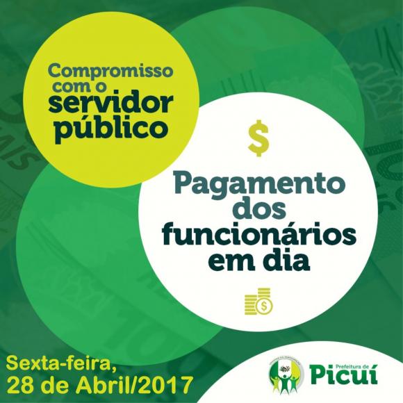 A Prefeitura de Picuí, por meio da Secretaria de Finanças, esteve realizando à meia-noite de hoje, o pagamento da folha de pessoal ativo e inativo. De acordo com o Márcio Renato, Secretário de Finanças, o montante injetado na economia de Picuí com o pagamento da folha municipal deste mês foi de R$2.124.282,72 (Dois Milhões, cento e vinte e quatro mil, duzentos e oitenta e dois reais e setenta e dois centavos) ao somar junto ao pagamento liberado dos servidores inativos do Instituto de Previdência de Picuí (IPSEP), no valor de R$349.996,10 (Trezentos e quarenta e nove mil, novecentos e noventa e seis reais e dez centavos) e o aumento dado aos professores referente ao piso nacional de 7,08%. Comparado a folha de março, houve um aumento de aproximadamente R$200 mil (Duzentos mil reais).