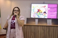 A secretária municipal de Educação, Maria da Guia Lucena, participou ativamente do encontro, destacando o compromisso da gestão em fortalecer a formação continuada e garantir condições de trabalho adequadas para os profissionais que atuam diretamente com estudantes da Educação Especial Inclusiva.