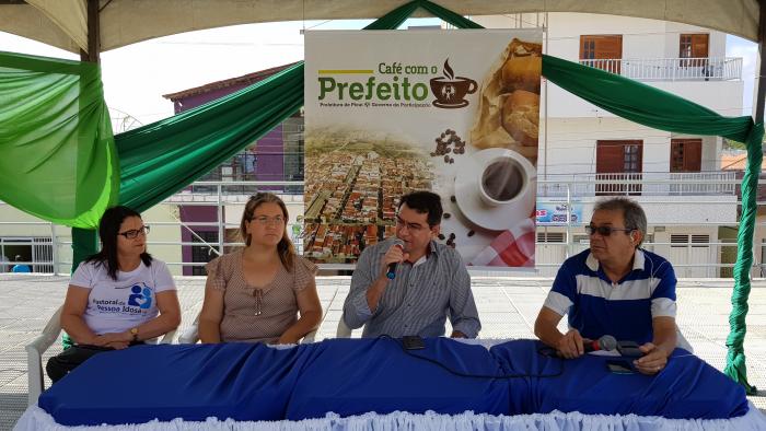 O prefeito Olivânio Remígio apresentou o Programa Café com o Prefeito nesta segunda, 1º de outubro, da Praça Getúlio Vargas, durante o "Vida em Movimento", evento que faz parte do calendário alusivo às comemoração da Semana do Idoso, sob a Campanha "Viver Não Tem Idade".