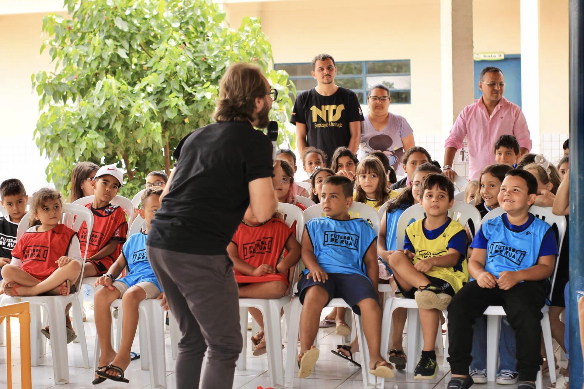 Na manhã de hoje (04), aconteceu o lançamento do Projeto Futebol de Rua que compõe o XII Núcleo da empresa CTG, na EMEF Josefa Suelene para as crianças participantes, seus pais e responsáveis e toda a comunidade escolar das escolas contempladas: EMEF Governador Flávio Ribeiro e EMEF Josefa Suelene.