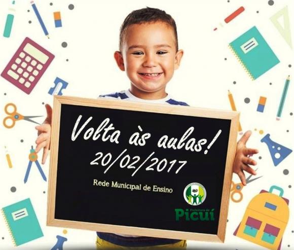 A Prefeitura Municipal de Picuí, através da secretaria de educação, definiu o dia 20/02 para início do período letivo 2017 em toda rede municipal de ensino. A data foi baseada em processos de licitação para merenda escolar e de transportes, conserto de ônibus escolares e outros detalhes para que as aulas tenham início com todas as escolas funcionando na totalidade.