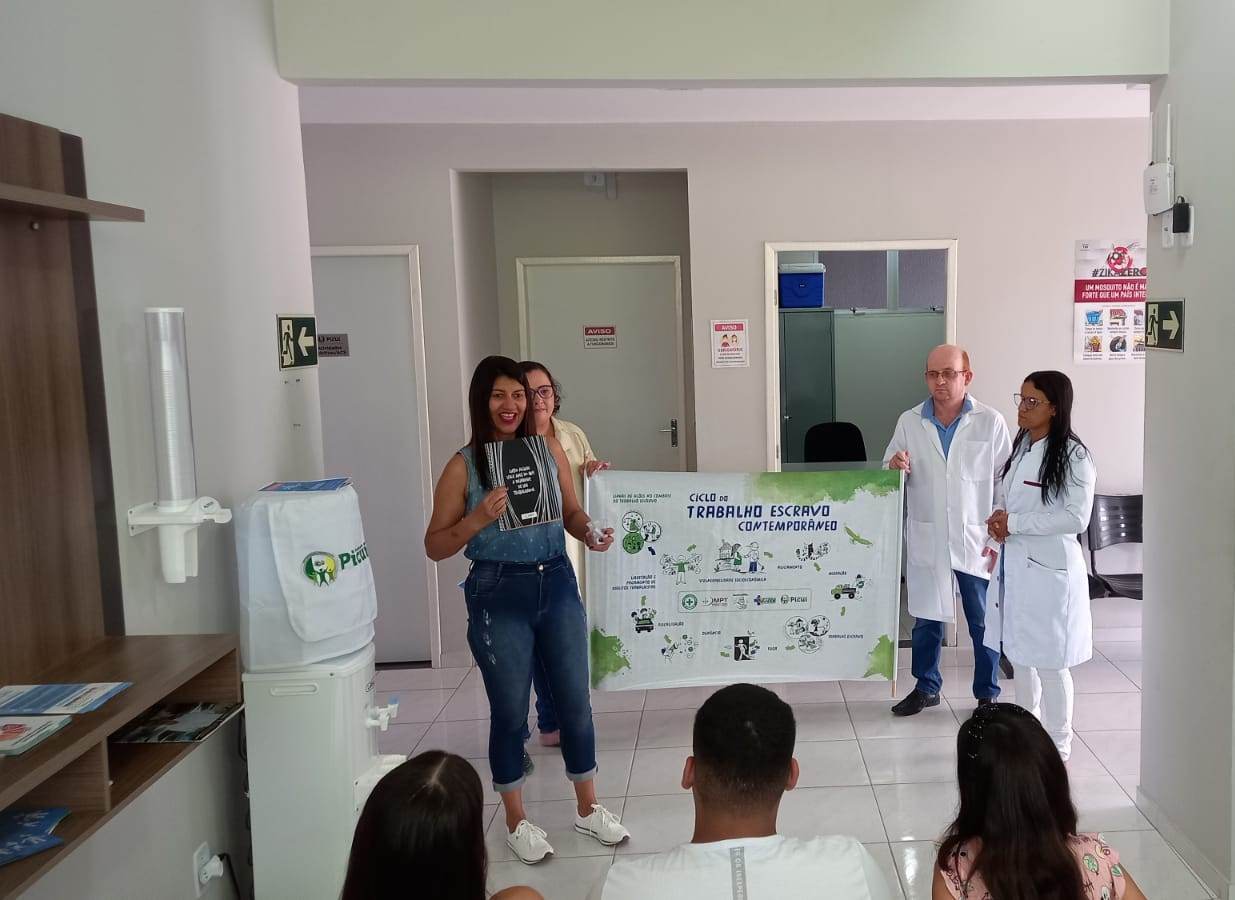 Durante o mês de janeiro do corrente ano, a Secretaria Municipal de Saúde realizou várias ações de combate ao trabalho escravo contemporâneo, ministrando diversas palestras, reuniões, rodas de conversas e visitas domiciliares. Houve distribuição de brindes, doados pelo Ministério Público do Trabalho de Campina Grande - MPT/CG e folders e de material digital, produzidos pela Secretaria de Saúde.