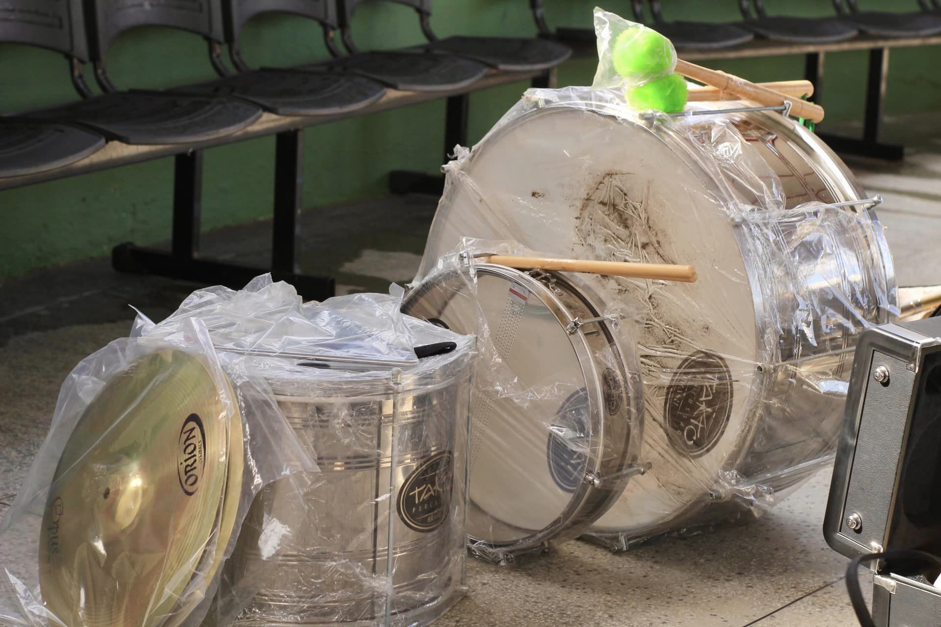 Família das percussões: Claixa clara - 1 vaga, Surdo - 1 vaga, Pratos - 1 vaga, Bombo - 1 vaga, Triângul0 - 1 vaga.