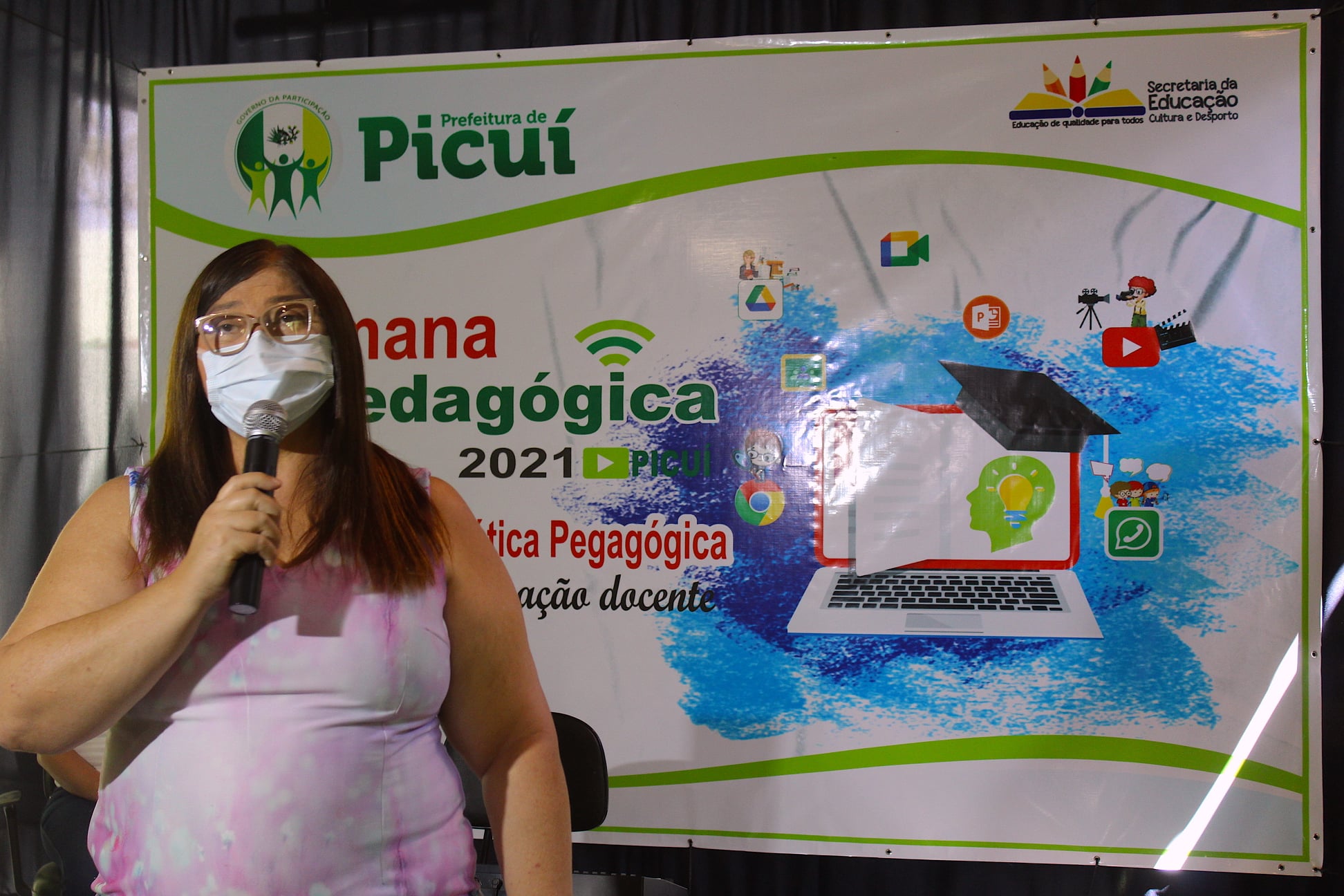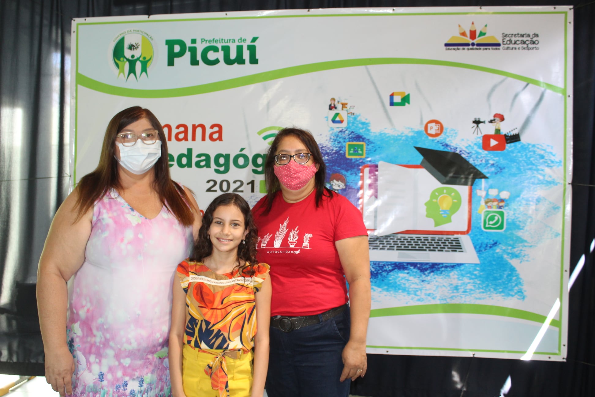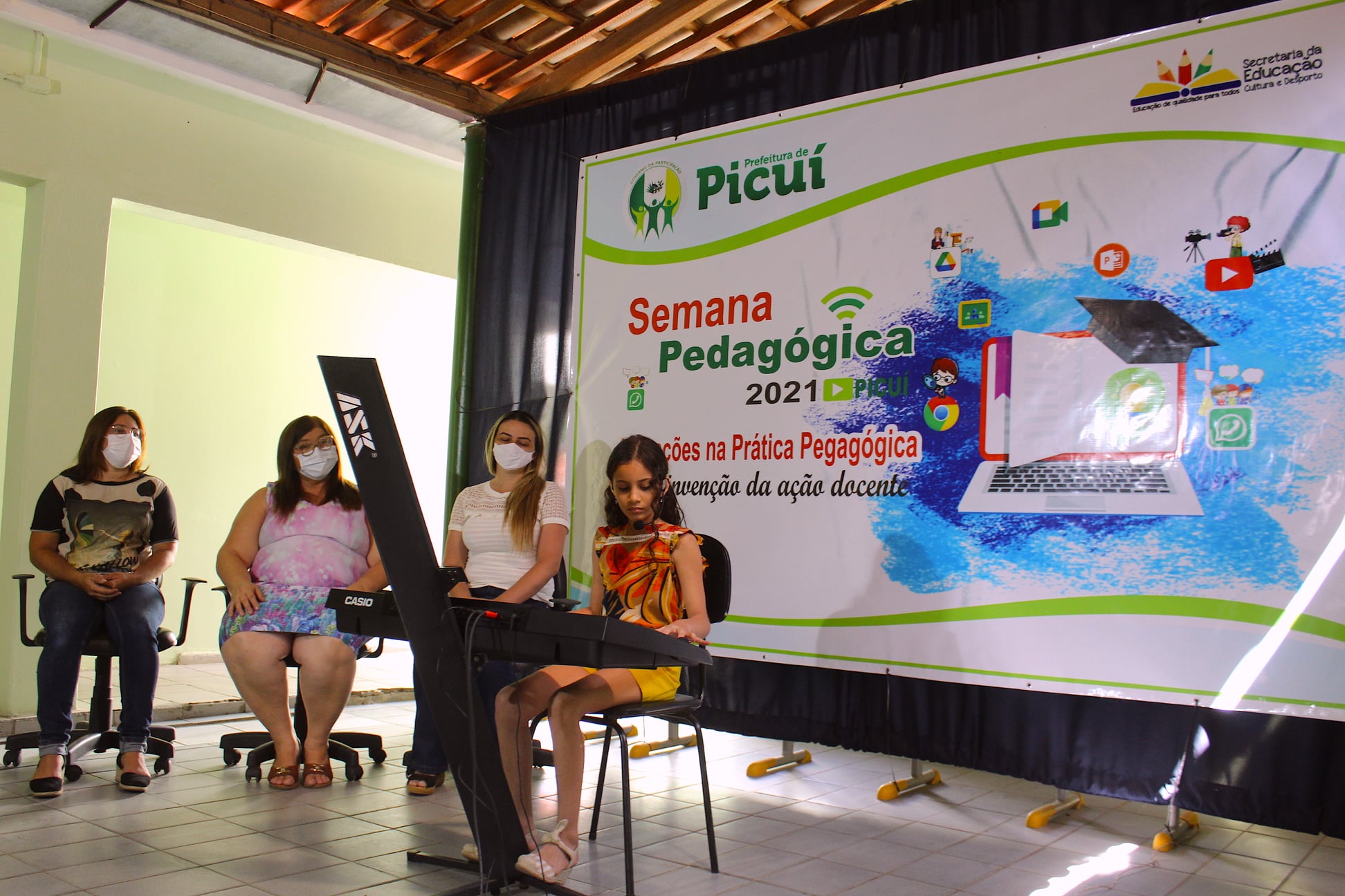 Na manhã desta quarta-feira (03/02), a Prefeitura Municipal de Picuí - Governo da Participação, por meio da Secretaria de Educação, Cultura e Desporto, realizou a live oficial de apresentação da Semana Pedagógica 2021. Na ocasião, estiveram presentes a Secretária de Educação, Maria da Guia Lucena, a Coordenadora de Educação Infantil, Cristiane Nunes, e representando o corpo docente da Rede Municipal de Ensino, Clidenora Ferreira. Também esteve presente no evento, a aluna da Rede Municipal, Letícia Salusto, que realizou uma bela apresentação musical, emocionando e sensibilizando a todos os presentes.