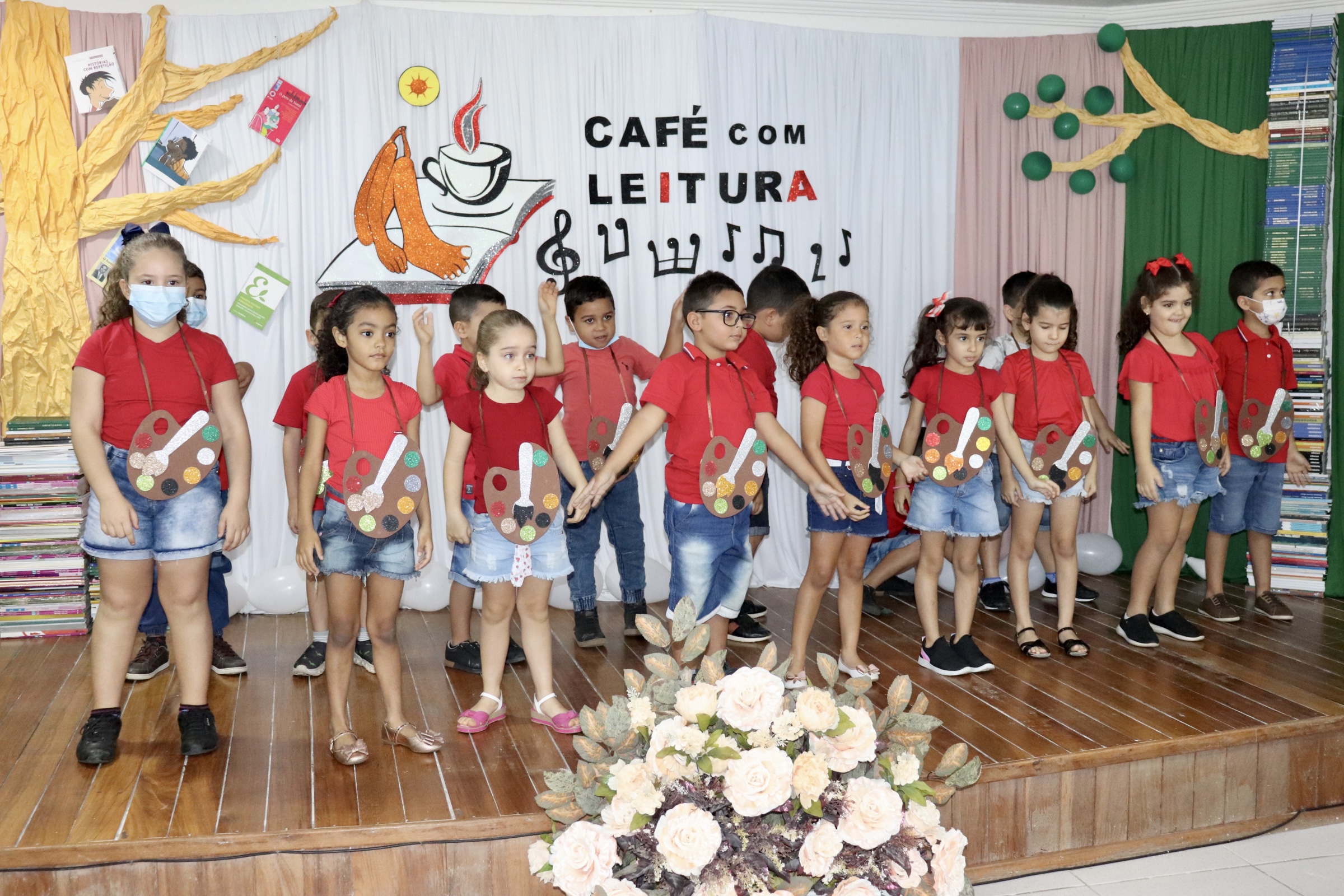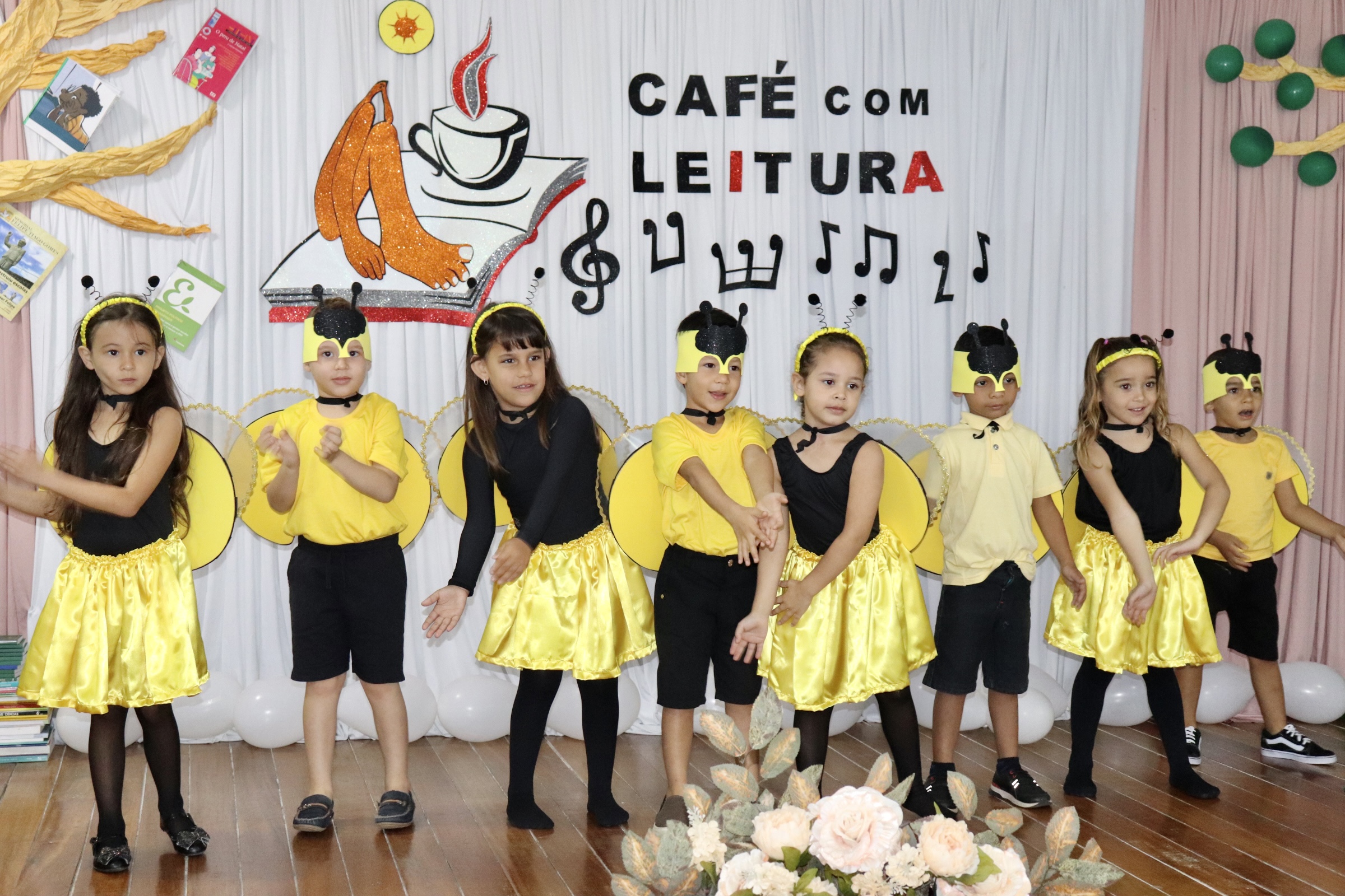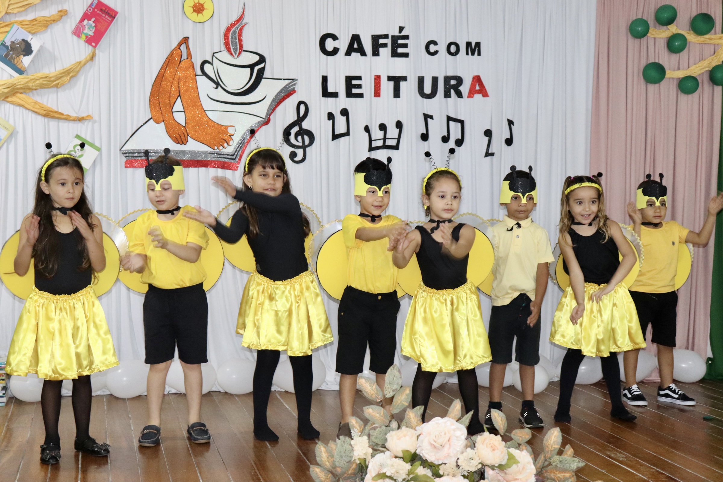 Dando prosseguimento ao Café com Leitura, foi apresentada a música “Aquarela” de Toquinho, pelos alunos da turma de Pré I da EMEF Maria do Socorro Farias de Macedo, coordenados pela professora Silvana Santos. Após esta apresentação, os alunos do Pré I e Pré II do Centro de Educação Infantil Marta Maria apresentaram a música “Abelhas” de Vinícius de Moraes, coordenados pelas professoras Paula e Hilene.